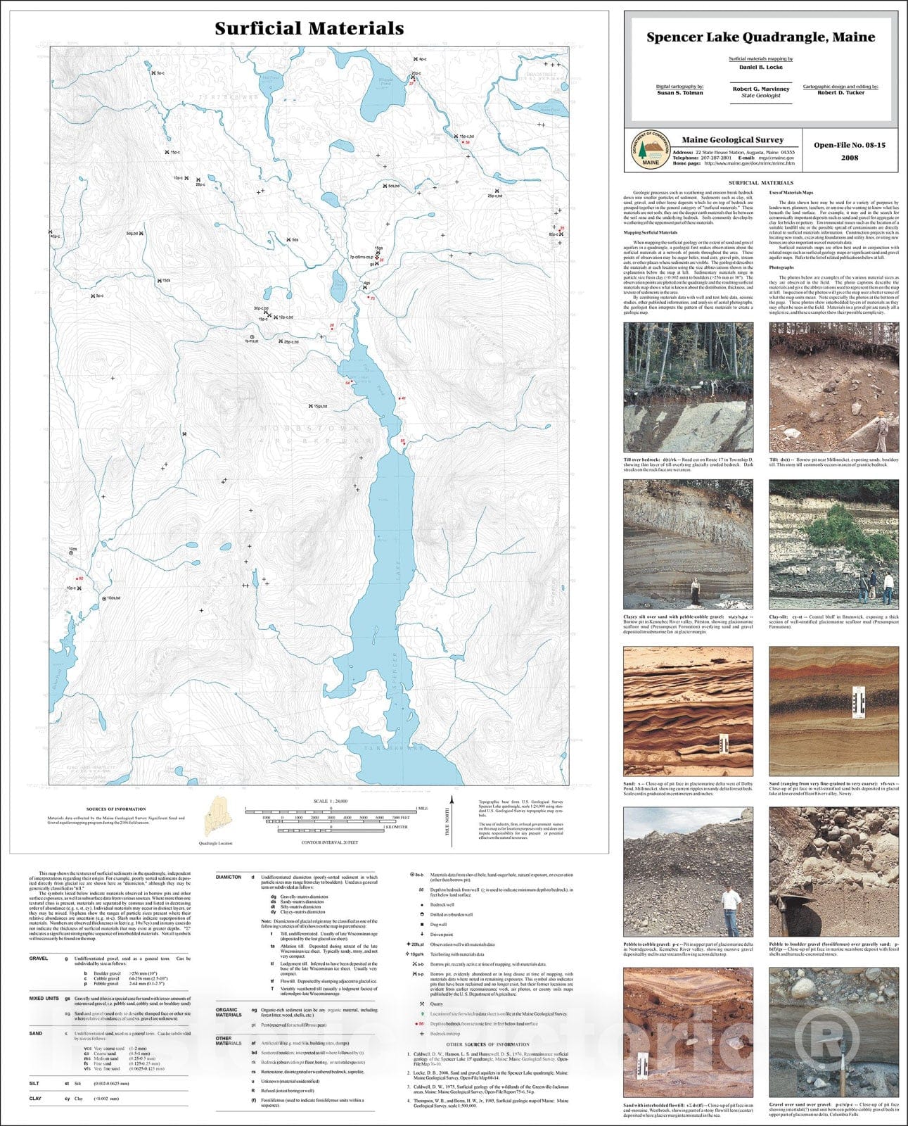 Map : Surficial materials of the Spencer Lake quadrangle, Maine, 2008 Cartography Wall Art :