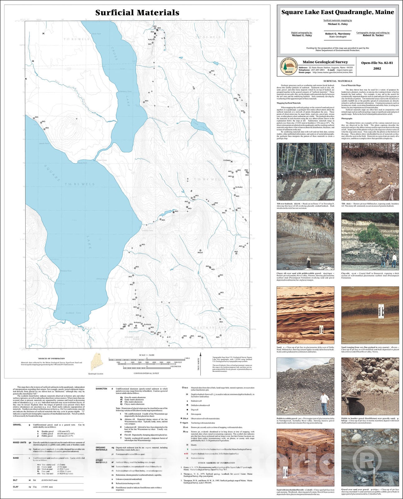 • Map : Surficial Materials in the Square Lake East Quadrangle, Maine, 2002 Cartography Wall Art :