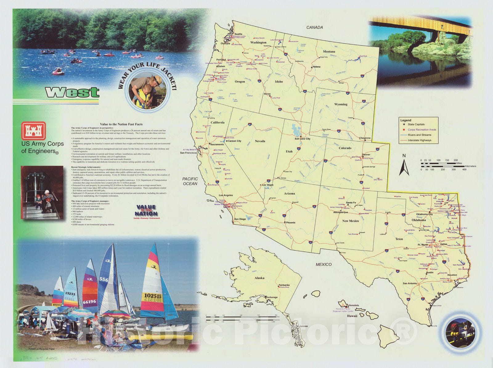 Map : United States, western 2005, Lakeside recreation in the West, Antique Vintage Reproduction