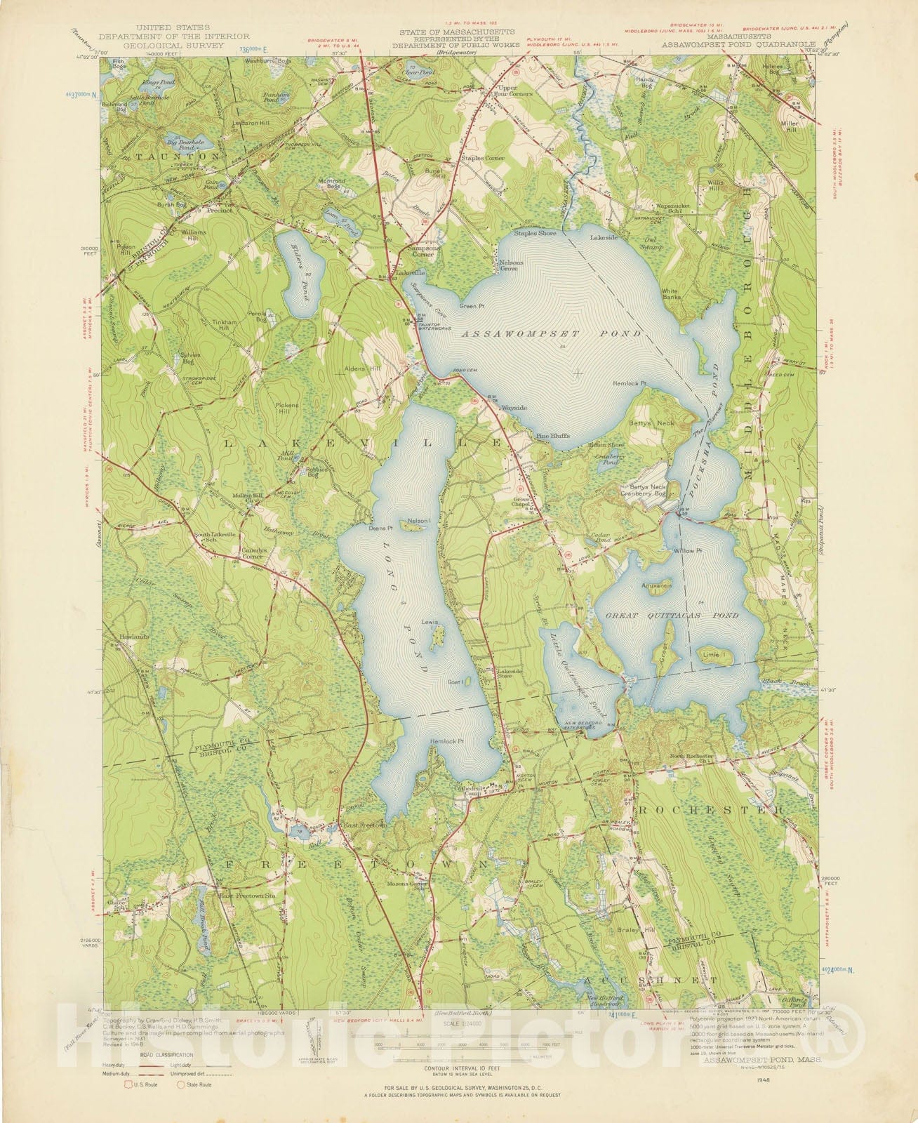 • .Historic Map : USGS 7.5 Minute Sheets and Quadrangles, Freetown & Lakeville & Middleborough & Taunton 1948 Topographic Map , Vintage Wall Art