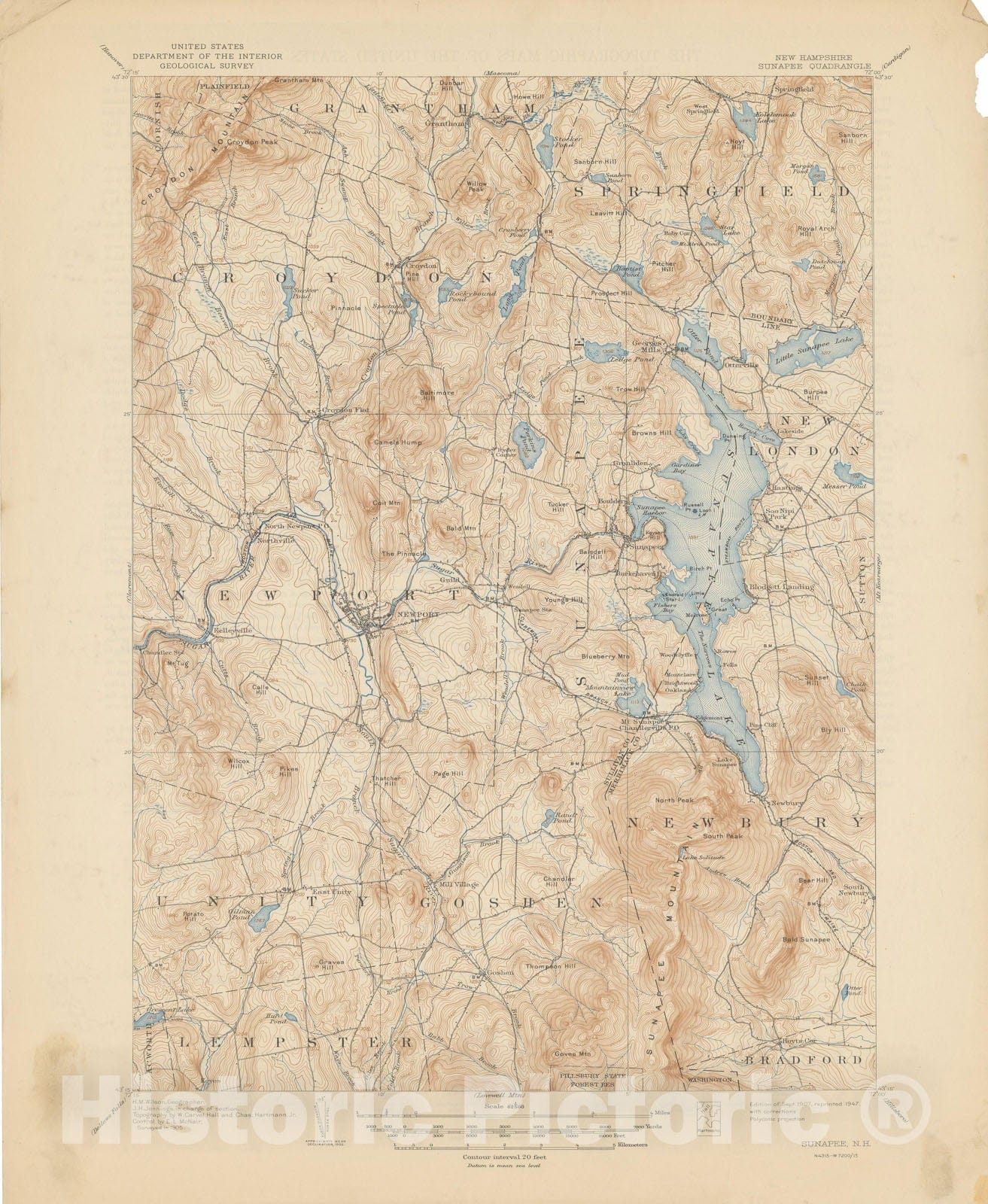 USGS 7.5 Minute Sheets and Quadrangles, Goshen & Lake Sunapee & Newport & Sunapee 1947