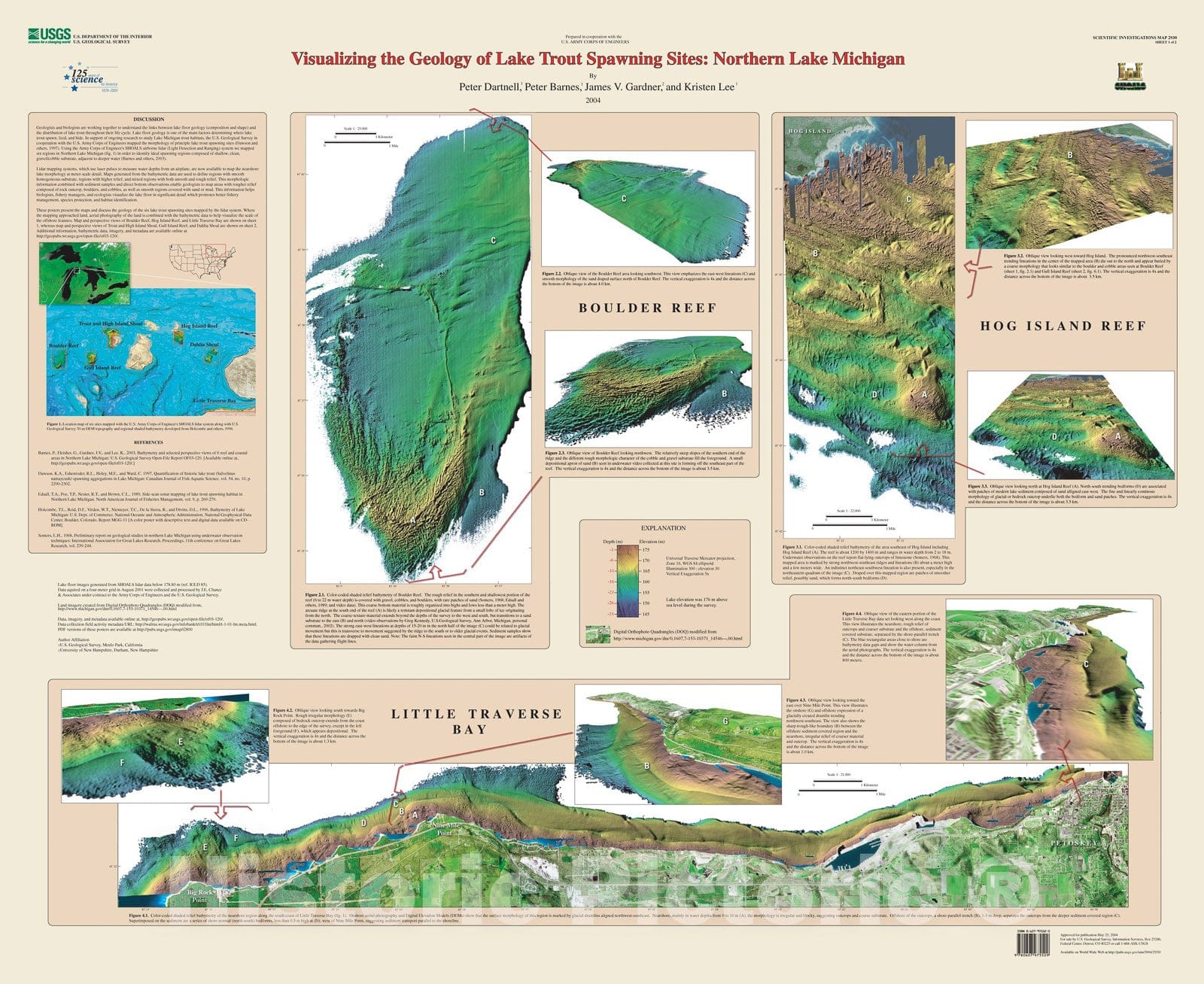 Map : Visualizing the geology of lake trout spawning sites: northern Lake Michigan [seafloor scans), 2004 Cartography Wall Art :