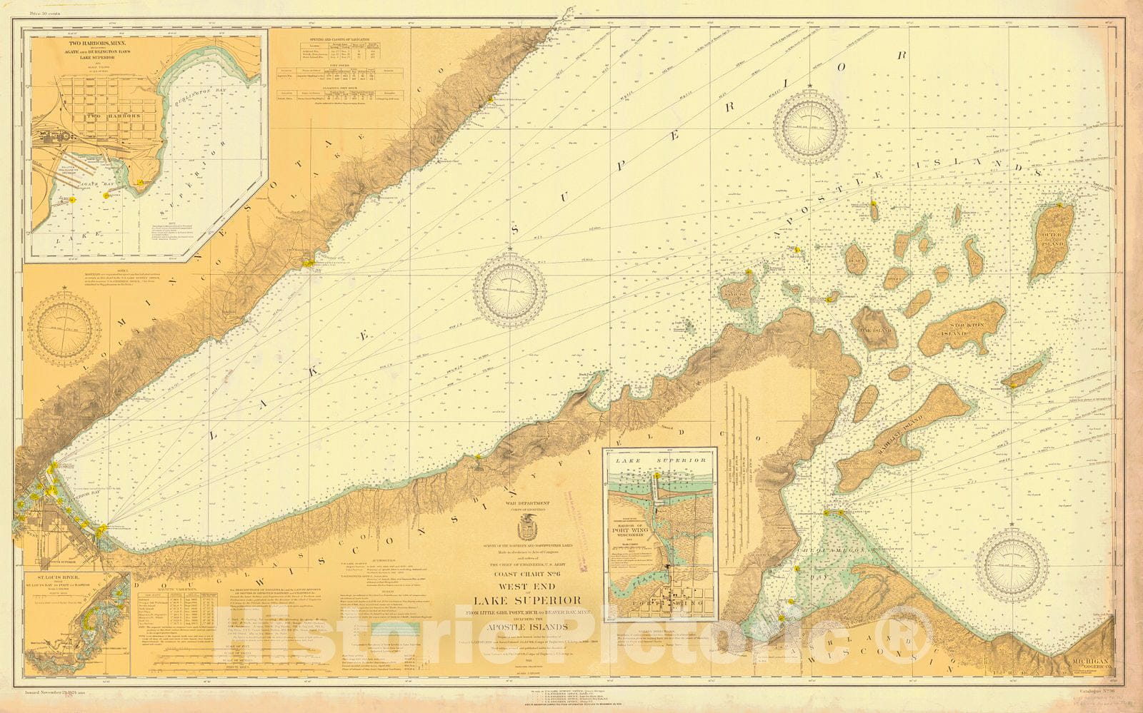 Historic Nautical Map - West End Of Lake Superior From Little Girl Point Mich To Beaver Bay Minn Including The Apostle Islands, 1924 NOAA Chart - Vintage Wall Art