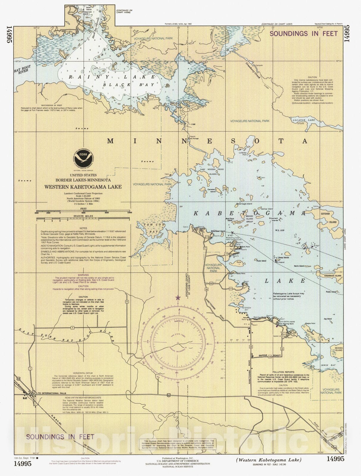 Historic Nautical Map - Western Kabetogama Lake, MN, 1991 NOAA Chart - Vintage Wall Art