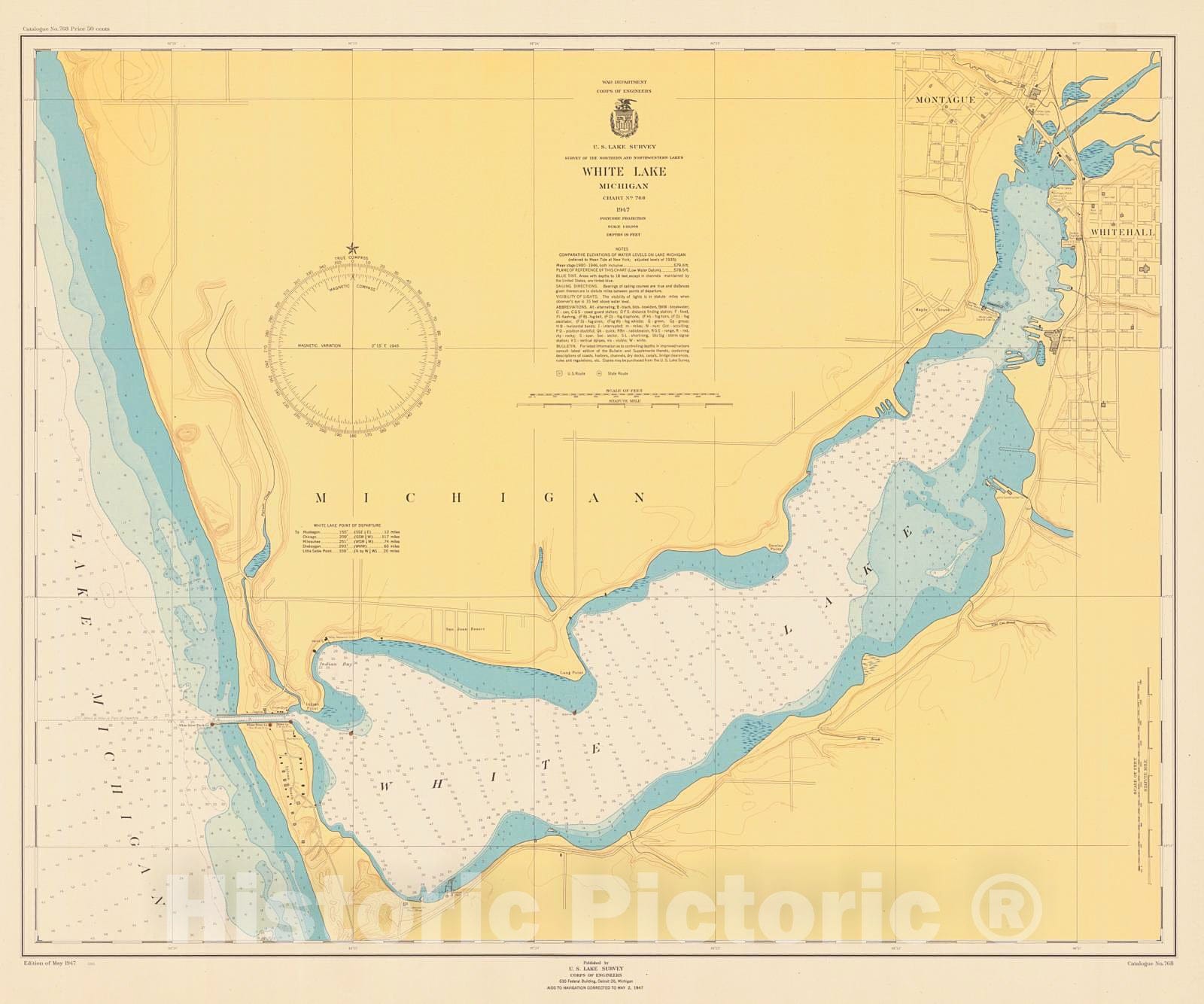 Historic Nautical Map - White Lake, 1947 NOAA Chart - Michigan (MI) - Vintage Wall Art