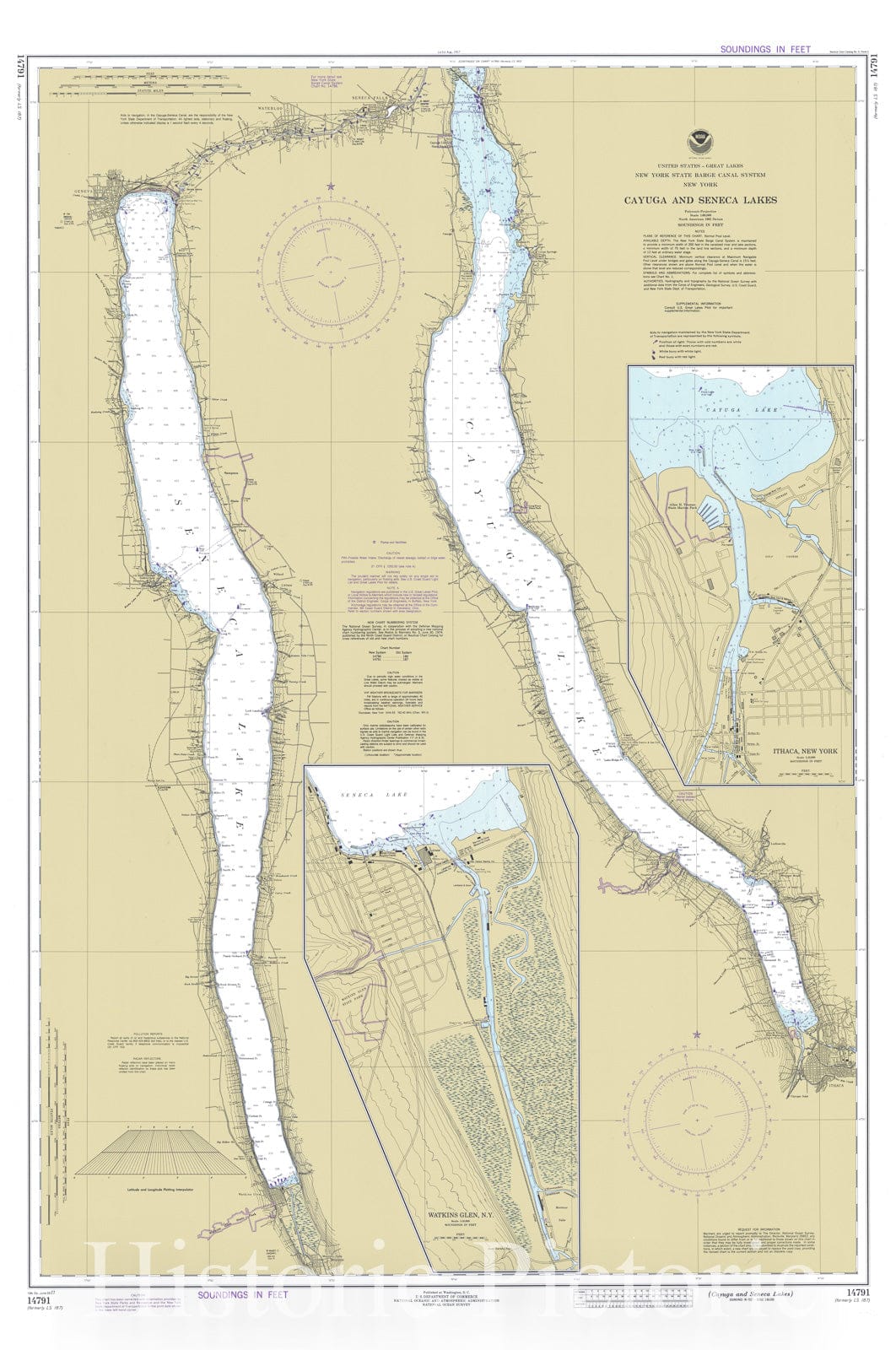Historic Nautical Map - Cayuga And Seneca Lakes, 1977 NOAA Chart - New York (NY) - Vintage Wall Art