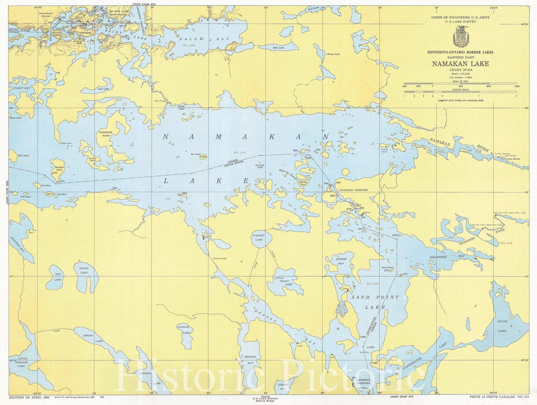 Historic Nautical Map - Minnesota-Ontario Border Lakes Eastern Part Namakan Lake, 1950 NOAA Chart - Minnesota (MN) - Vintage Wall Art