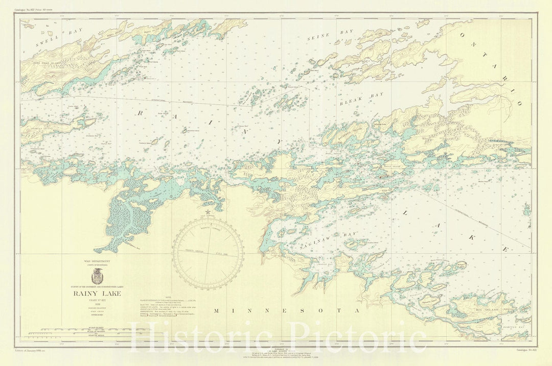 Historic Nautical Map - Rainy Lake, 1938 NOAA Chart - Minnesota (MN) - Vintage Wall Art