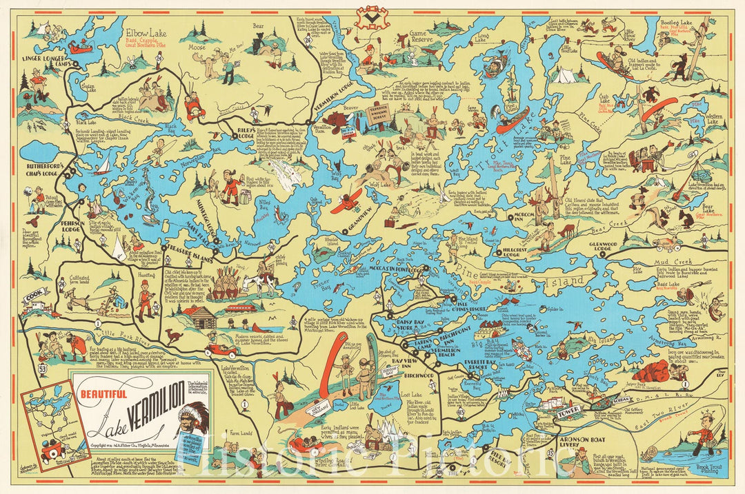 Historic Map : Beautiful Lake Vermillion . . .1938, 1938, Frank Antoncich, Vintage Wall Art