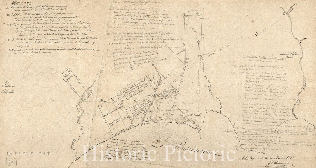 Historical Map, 1798 Map of The North Shore of Lake Pontchartrain Between Bayou Chenchuba and Bayou Lacombe, Louisiana, Vintage Wall Art