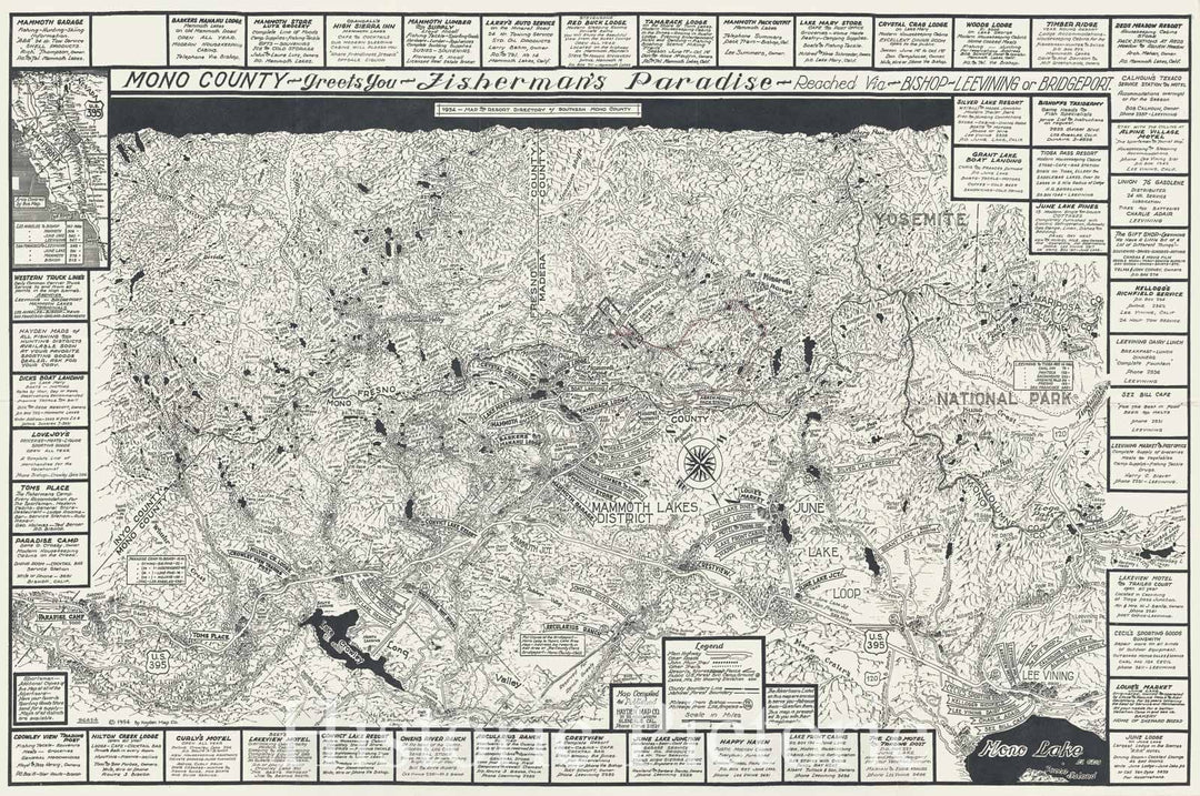 Historic Map : The Mammoth Lakes Dist. and Yosemite, NP, California, Hayden, 1954, Vintage Wall Art