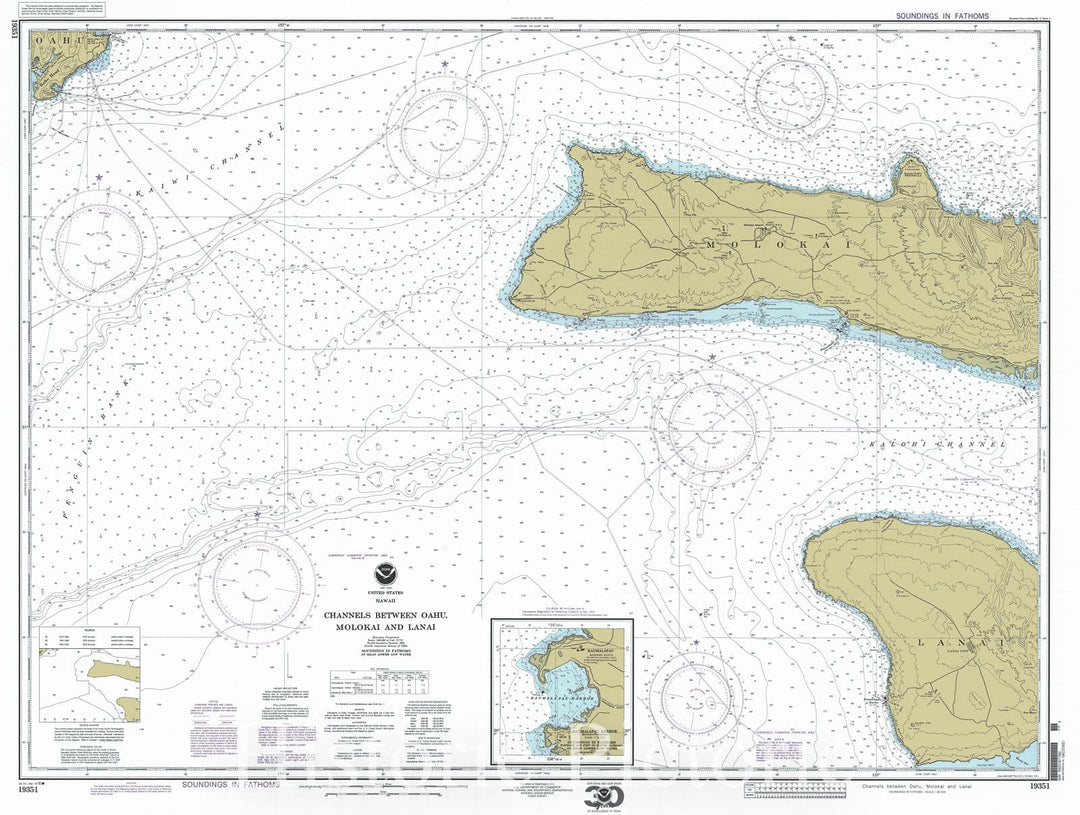 Historic Nautical Map - Channels Between Oahu, Molokai And Lanai, 1973 NOAA Chart - Hawaii (HI) - Vintage Wall Art