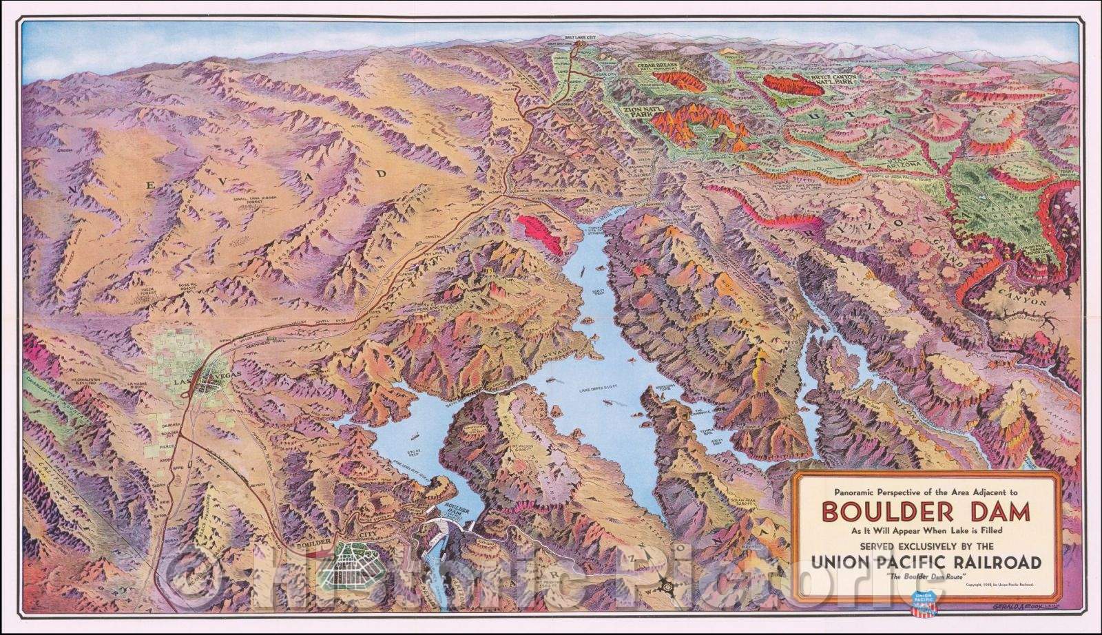Historic Map - Boulder Dam/Las Vegas Panoramic Perspective of the Area Adjacent to Boulder Dam, 1936, Gerald A. Eddy v2