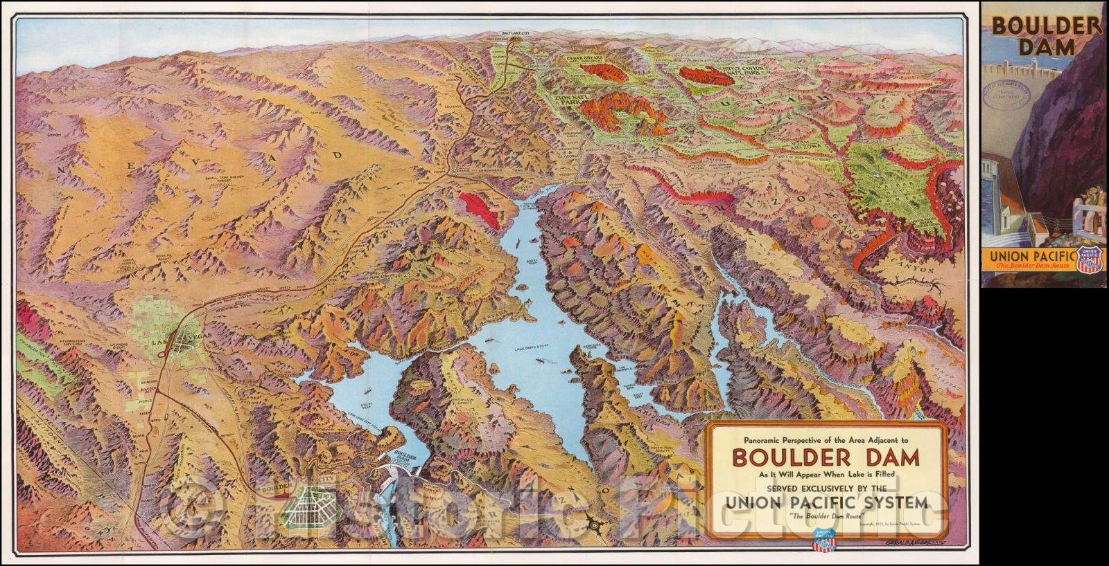 • Historic Map - Boulder Dam/Las Vegas Panoramic Perspective of the Area Adjacent to Boulder Dam, 1936, Gerald A. Eddy v1