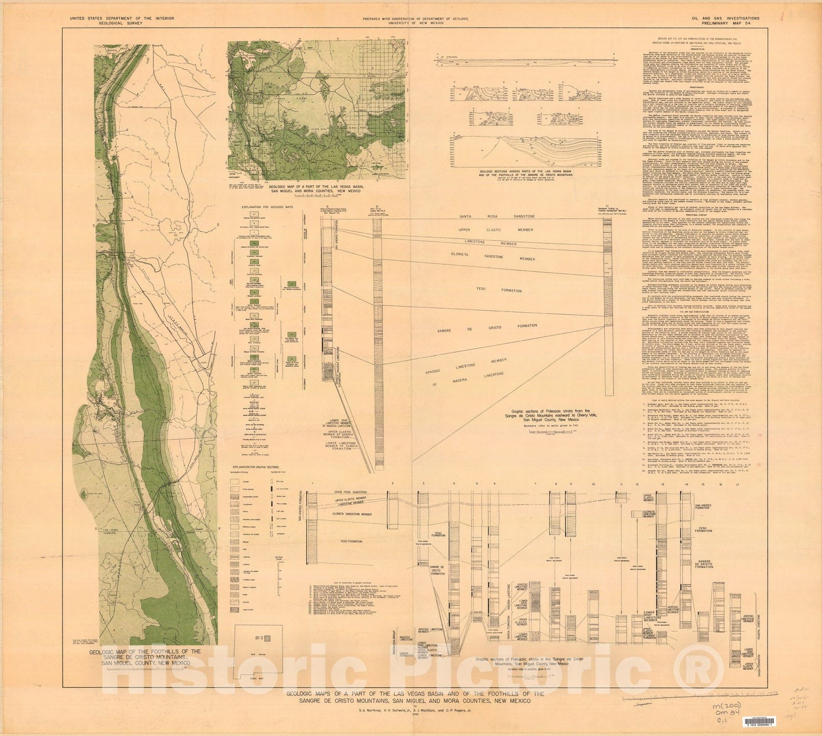 Map : Geologic maps of a part of the Las Vegas basin and of the foothills of the Sangre de Cristo Mountains, San Miguel and Mora Counties, New Mexico, 1946 Cartography Wall Art :