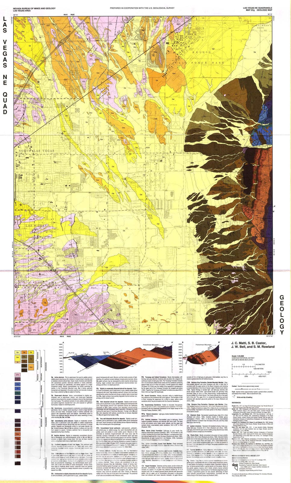 Map : Las Vegas NE Quadrangle Geologic Map, 1993 Cartography Wall Art :