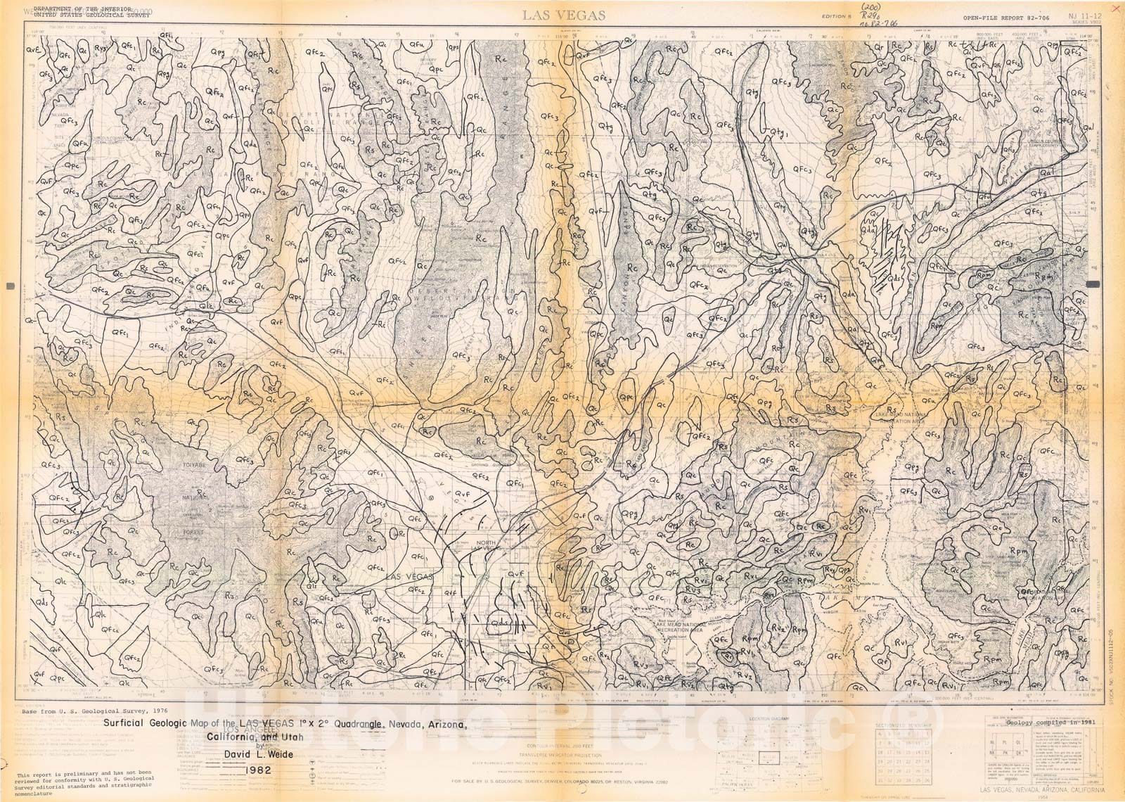 Map : Surficial geologic map of the Las Vegas one degree X two degree quadrangle, Nevada, Arizona, California, and Utah, one98two Cartography Wall Art :