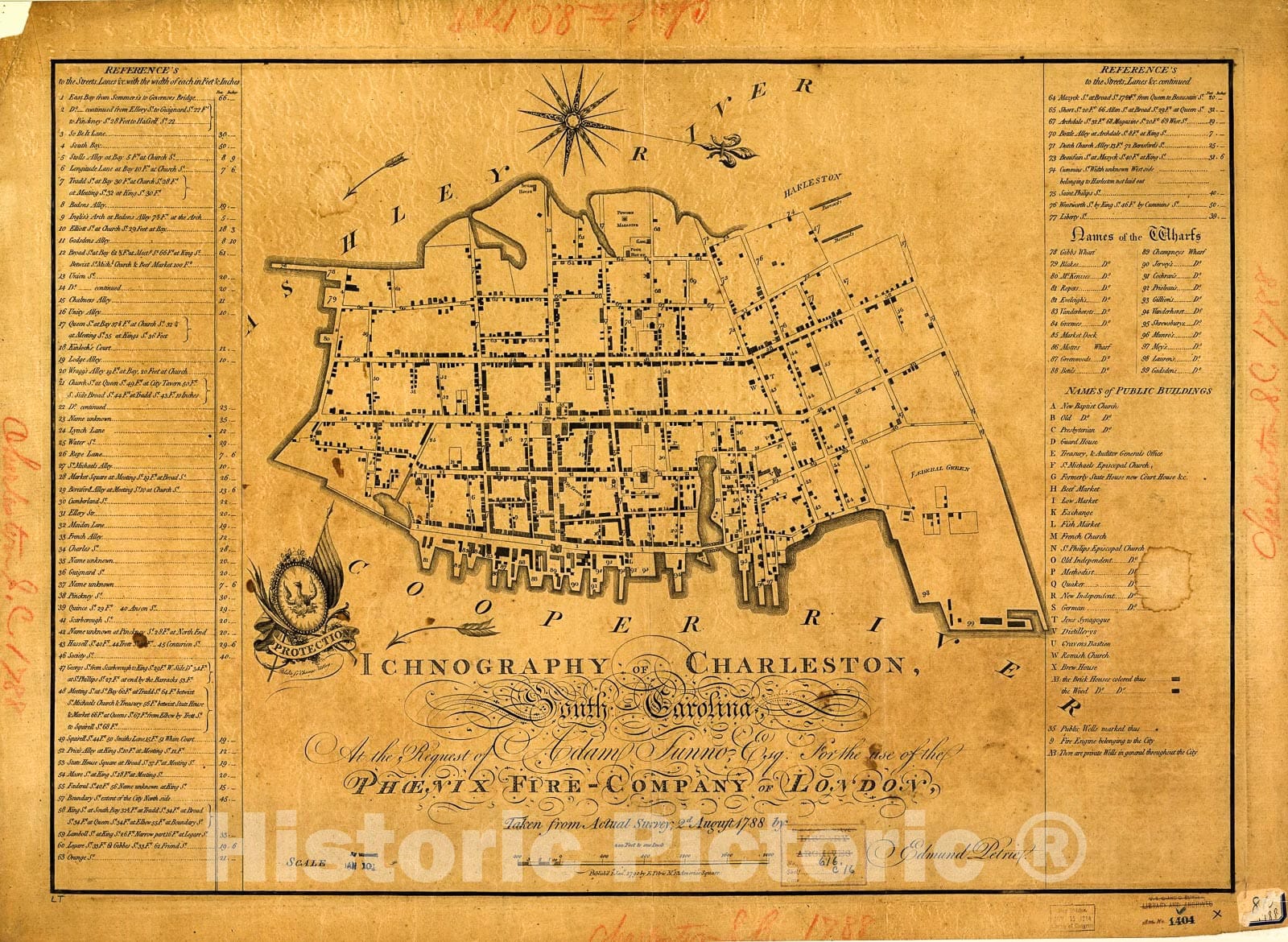 Historic 1790 Map - Ichnography of Charleston, South-Carolina : at The Request of Adam Tunno, Esq, for The use of The Phœnix Fire-Company of London, Taken from Actual Survey