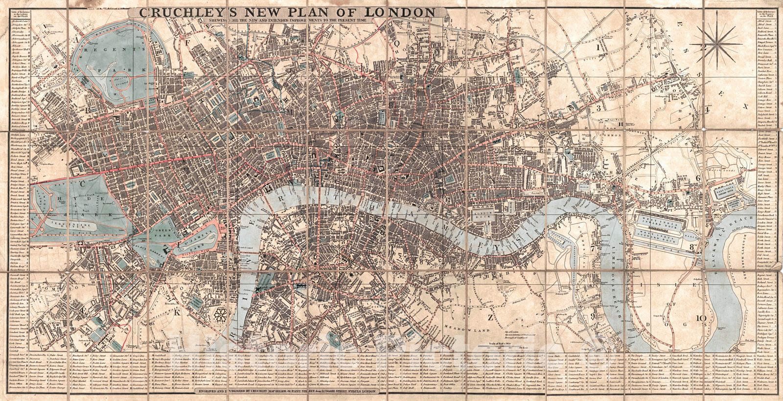Vintage Map | 1833 Cruchley's New Plan of London, showing all the new and intend improvements to the present time | Cruchley, George Frederick