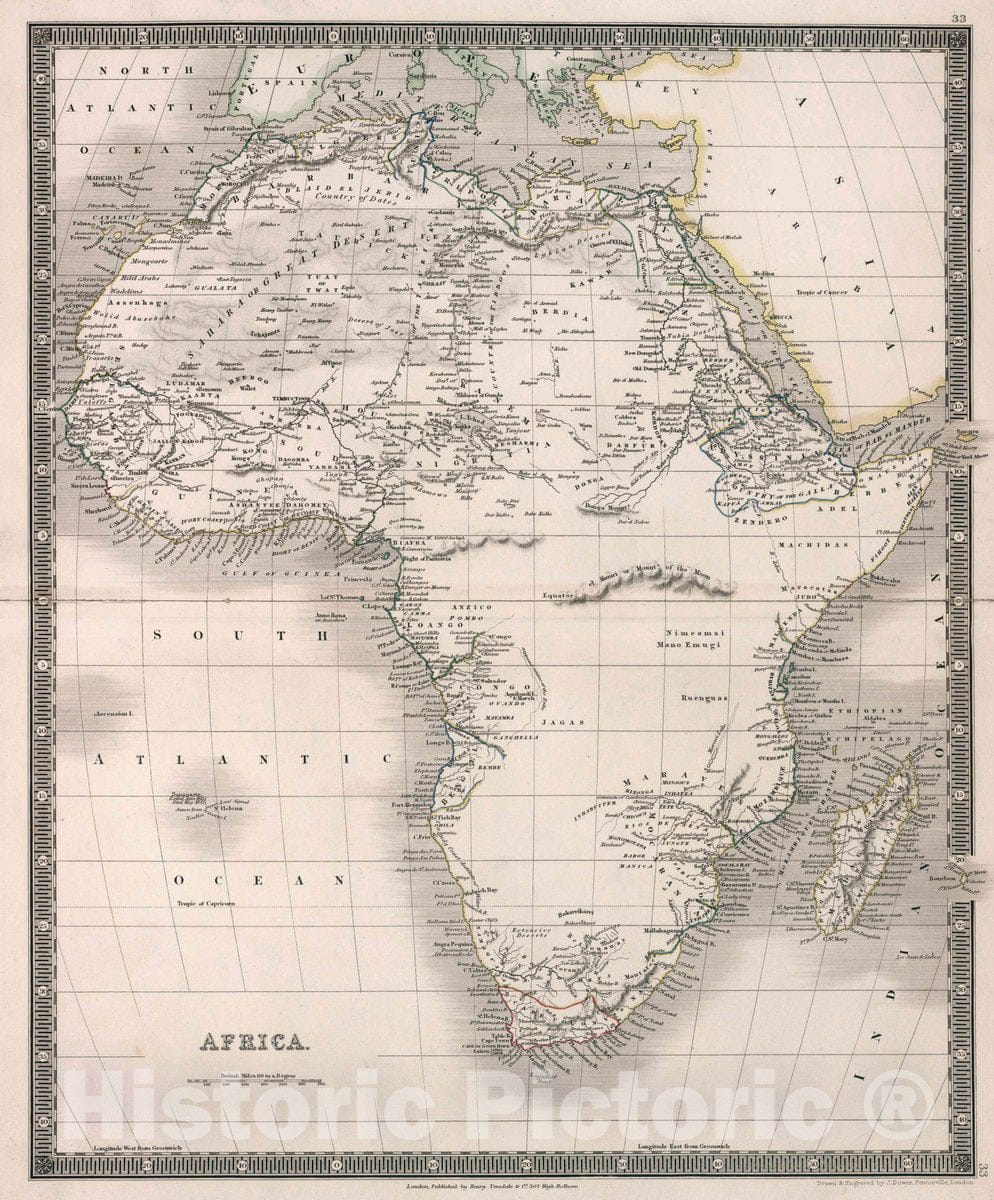 Historic Map : Africa. Drawn & Engraved by J. Dower. London, Published by Henry Teesdale & Co, 1836 Atlas - Vintage Wall Art