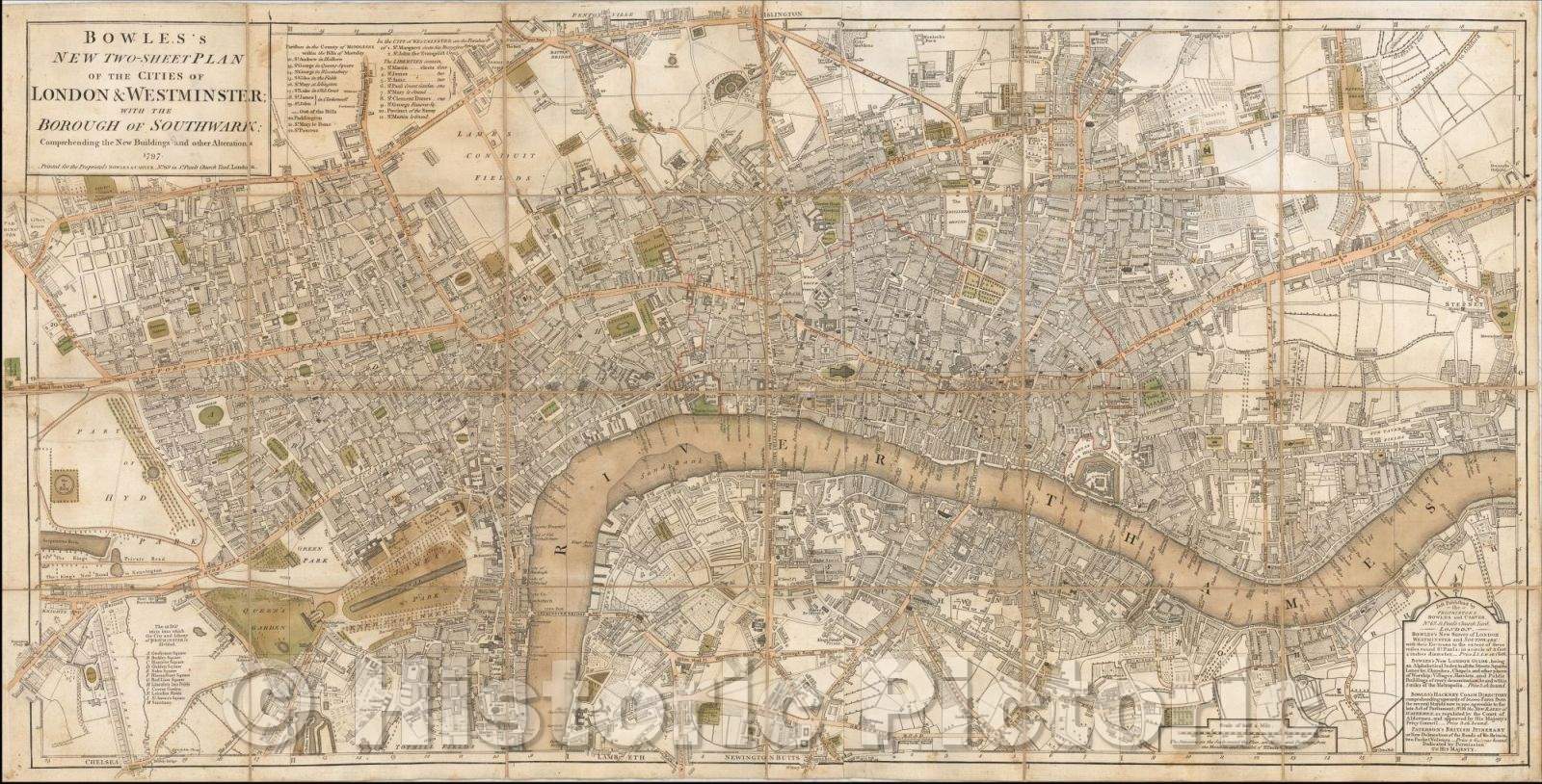 • .Historic Map - Bowles's New Two-Sheet Plan of the Cities of London and Westminster, with the Borough of Southwark, 1797, Carrington Bowles - Vintage Wall Art