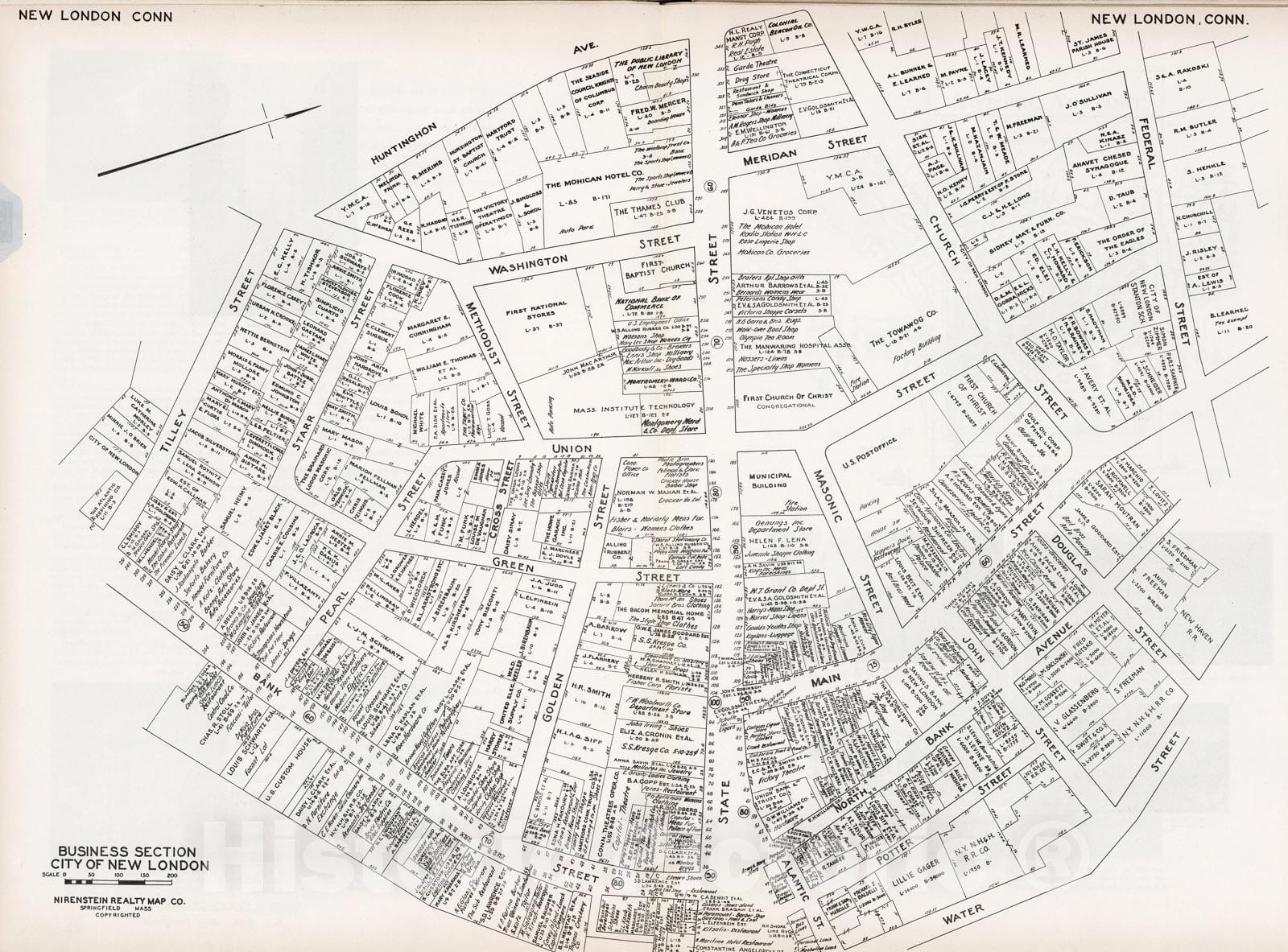 Historic Map : Business Section, City of New London (Connecticut)., 1946, Vintage Wall Decor