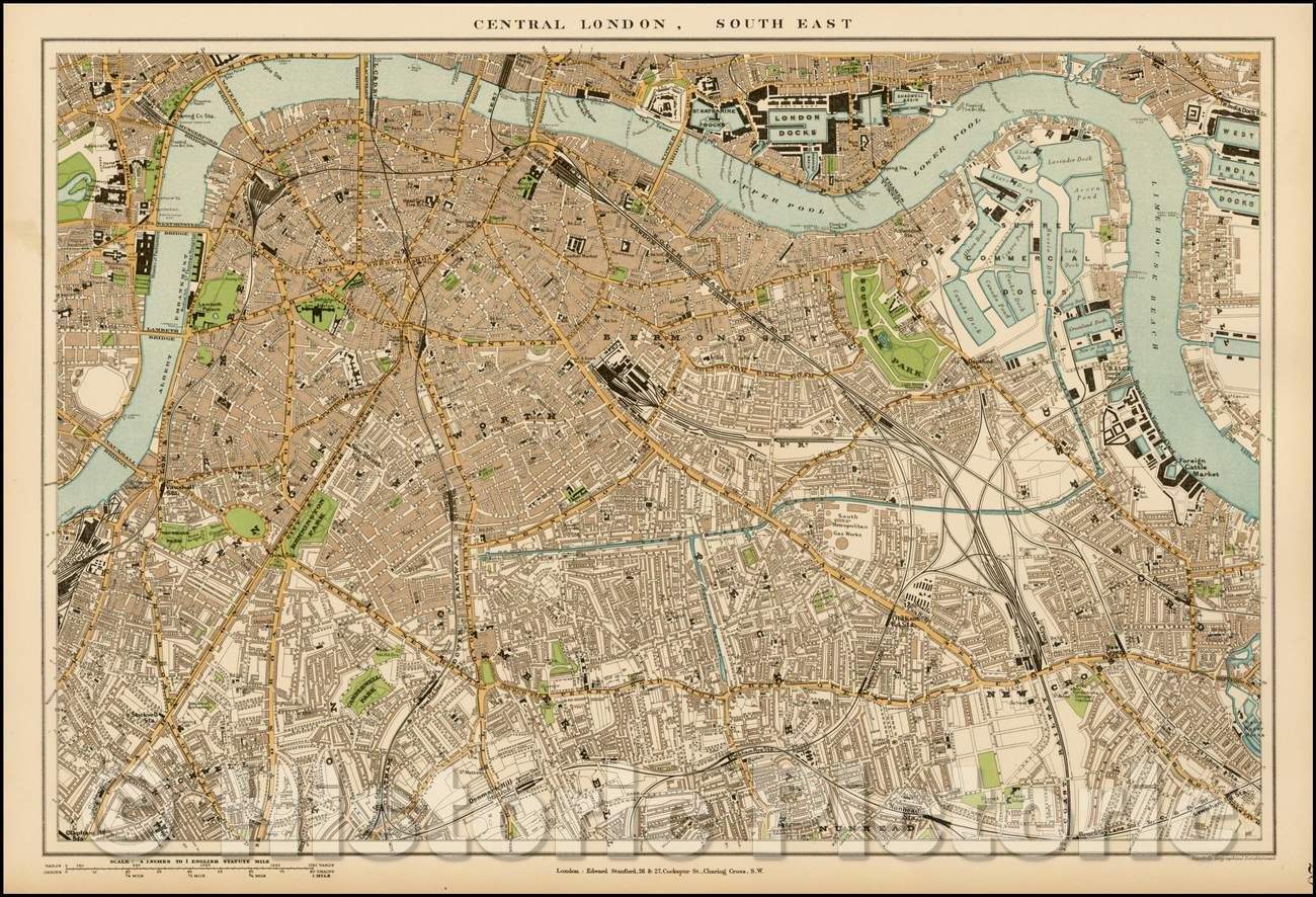 Historic Map - Central London, South East, 1896, Edward Stanford - Vintage Wall Art