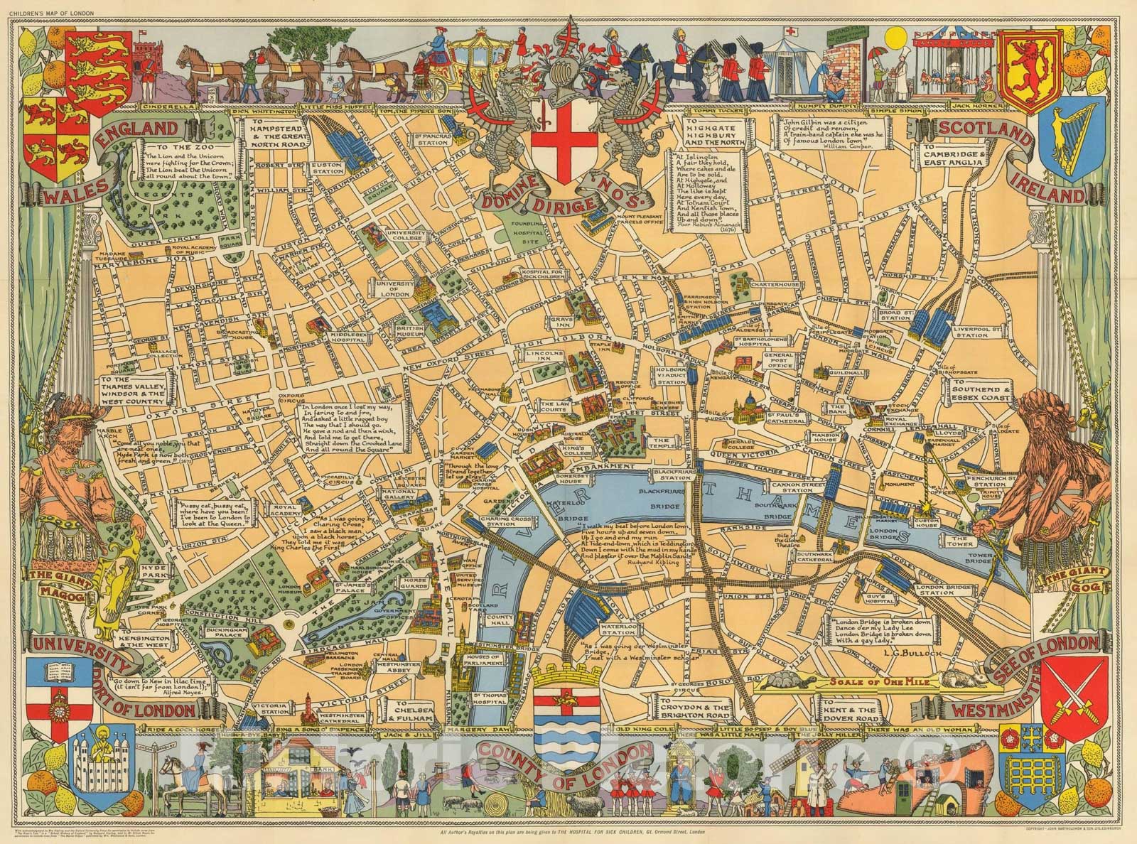 Historic Map : County of London (Children's Map of London), c1955, John Bartholomew, Vintage Wall Art