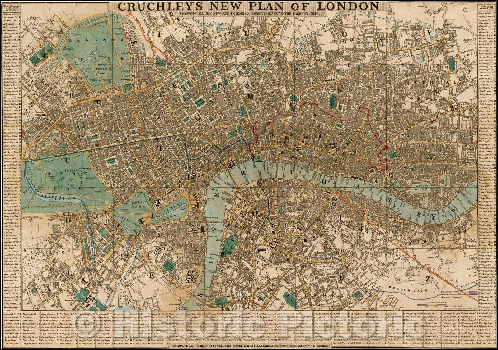 Historic Map - Cruchley's New Plan of London Shewing All the New and Intended Improvements to the Present Time, 1840, G.F. Cruchley - Vintage Wall Art