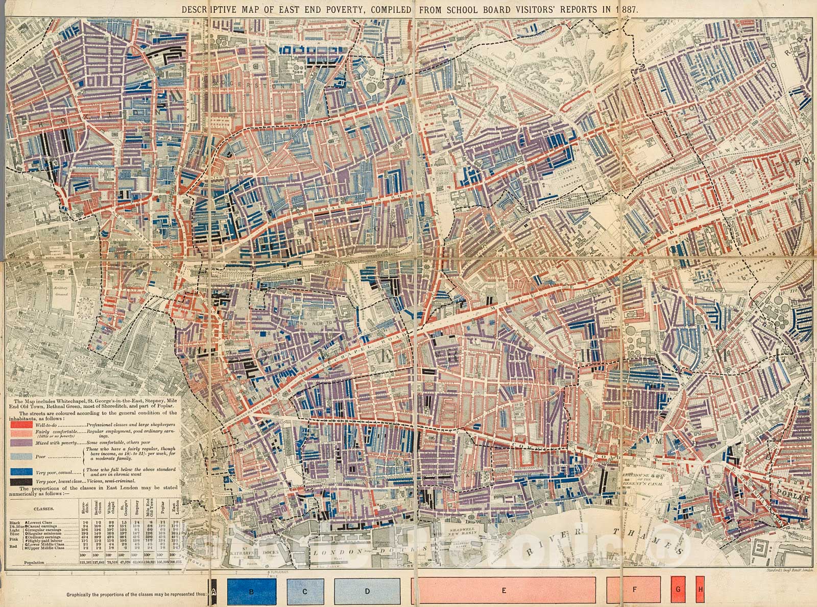 Historic Map : Descriptive Map of London Poverty, Compiled From School Board Visitors' Reports in 1887., 1889, Vintage Wall Decor