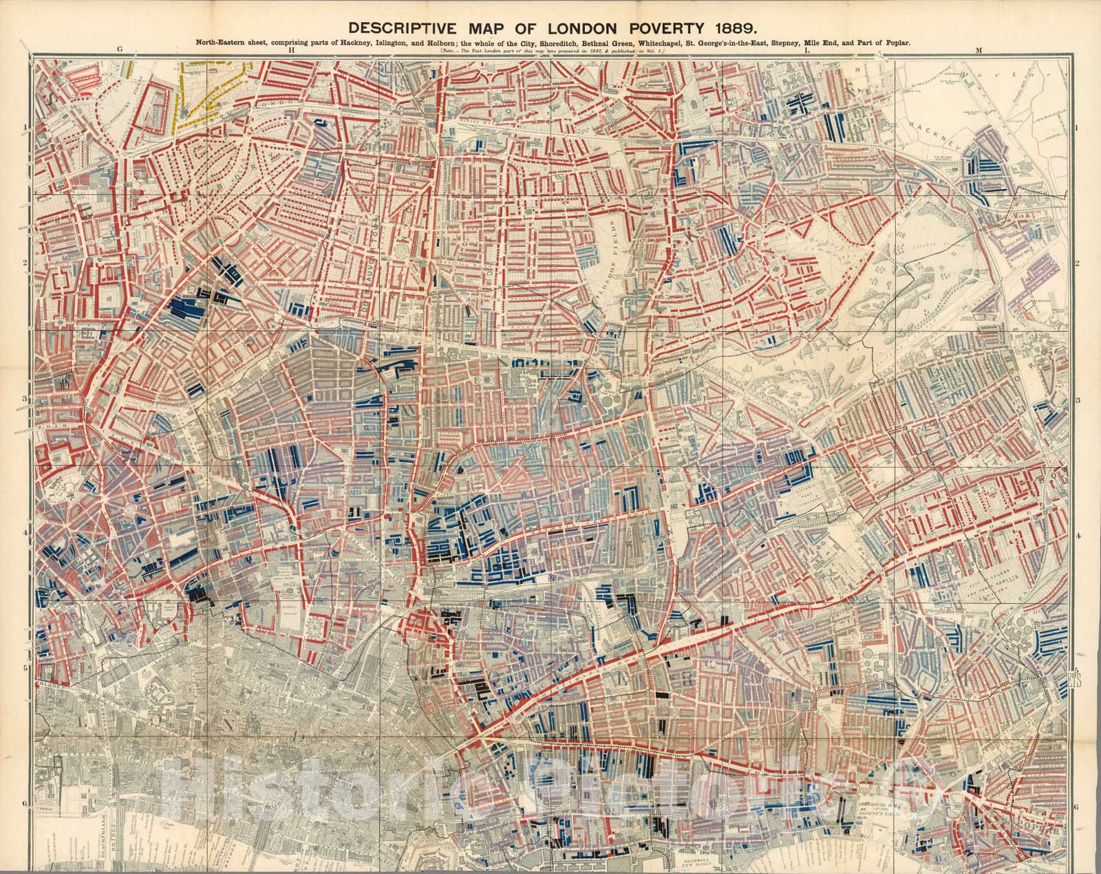 Historic Map : Descriptive map of London poverty. North-Eastern sheet, 1889 - Vintage Wall Art