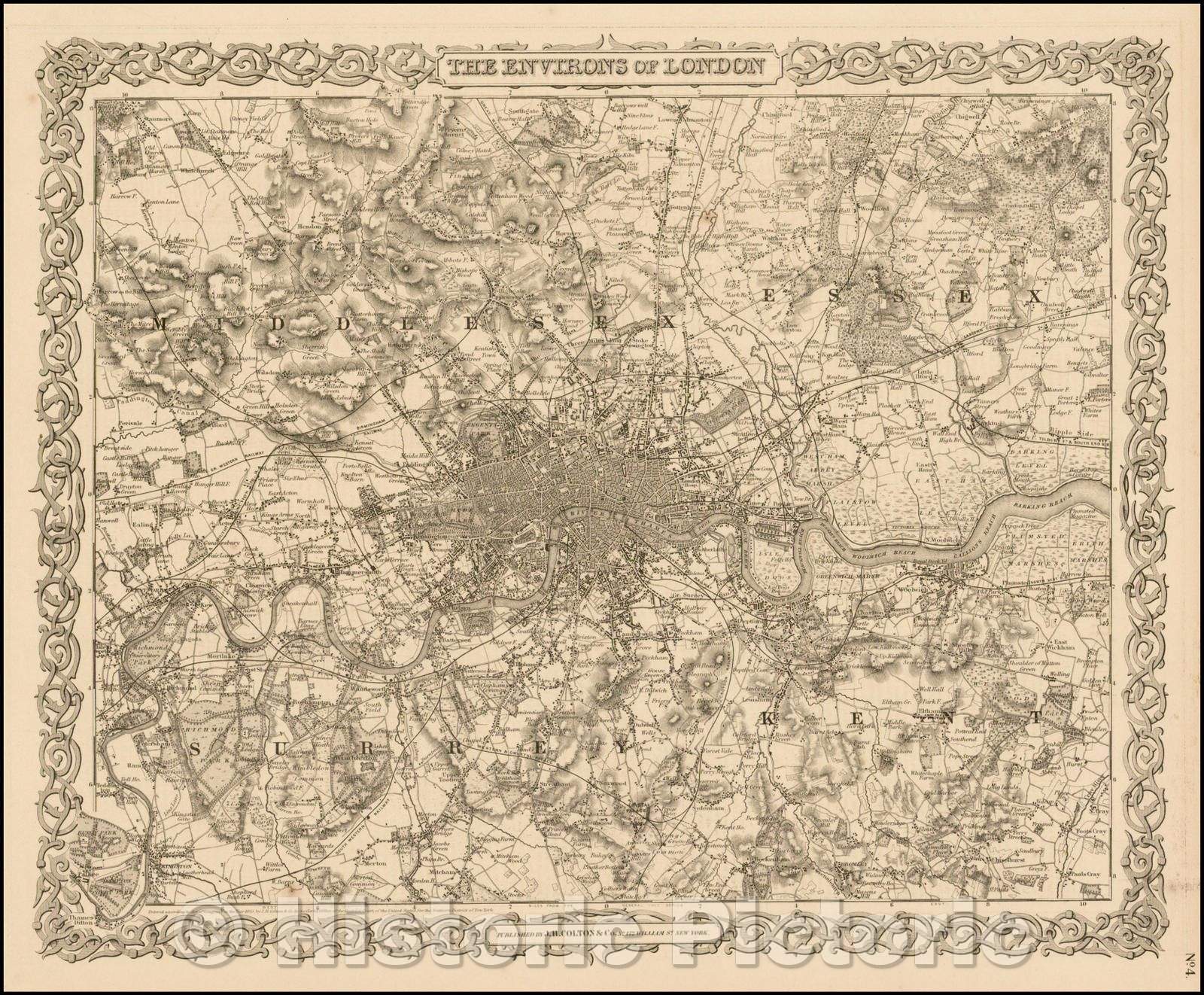 • .Historic Map - The Environs of London, 1856, Joseph Hutchins Colton - Vintage Wall Art