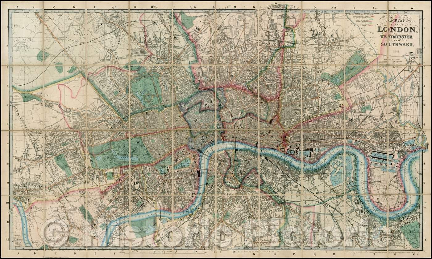 Historic Map - Laurie's Plan of London, Westminster and Southwark, 1866, Richard Holmes Laurie - Vintage Wall Art