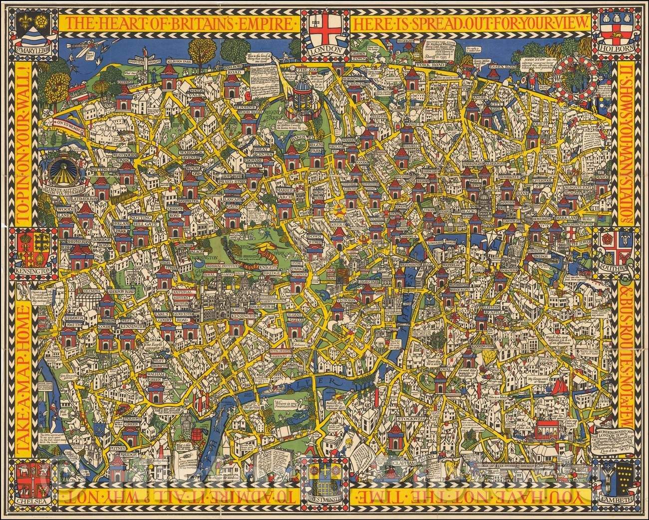 Historic Map - London The Heart of the British Empire Here Is Spread Out For Your View, 1924, MacDonald Gill - Vintage Wall Art