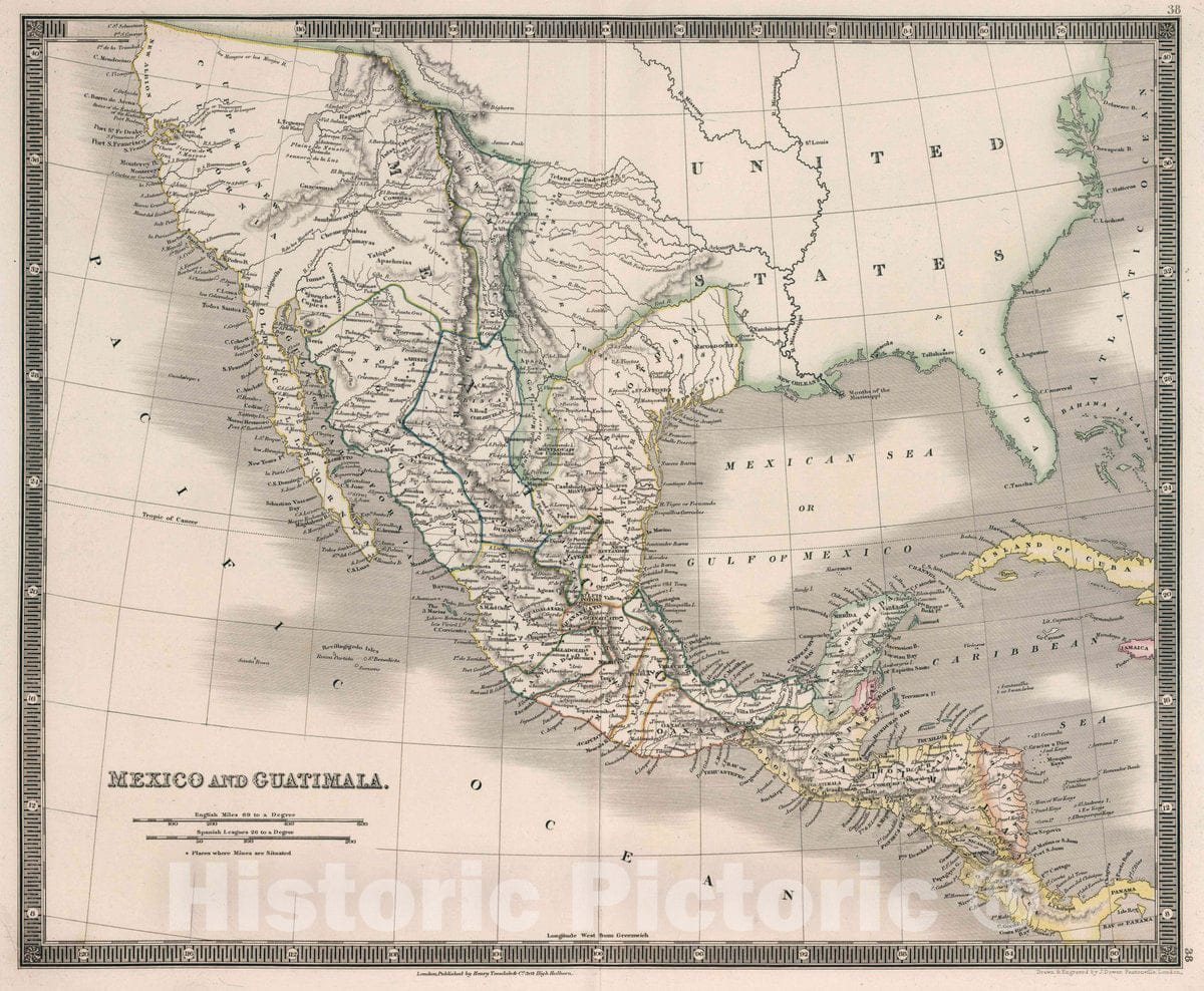 • .Historic Map : Mexico and Guatimala. Drawn & Engraved by J. Dower. London, Published by Henry Teesdale & Co, 1836 Atlas - Vintage Wall Art