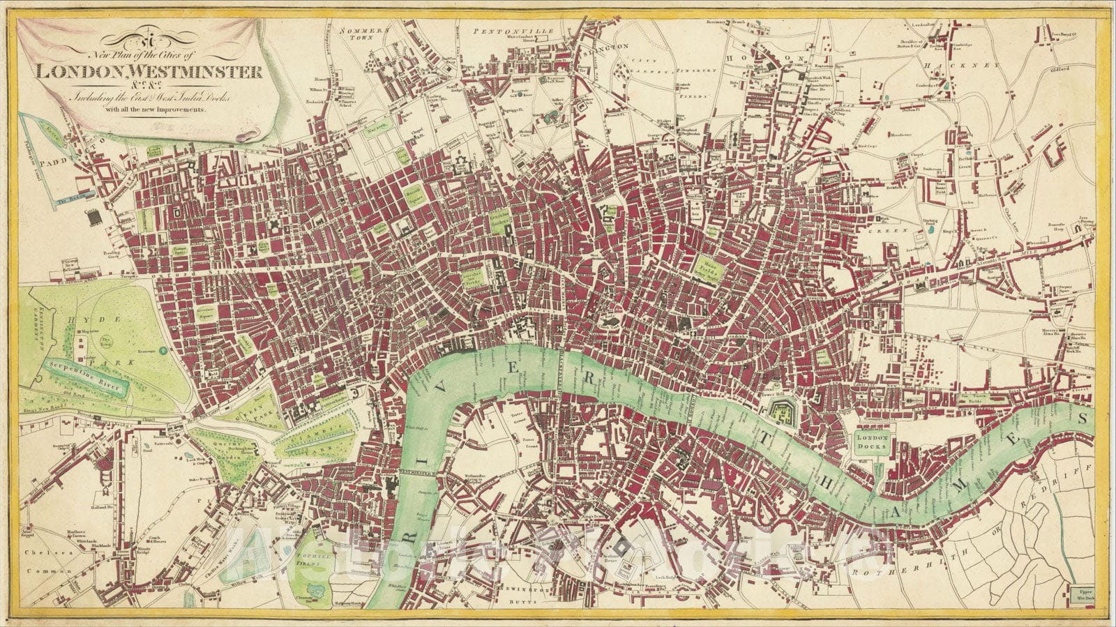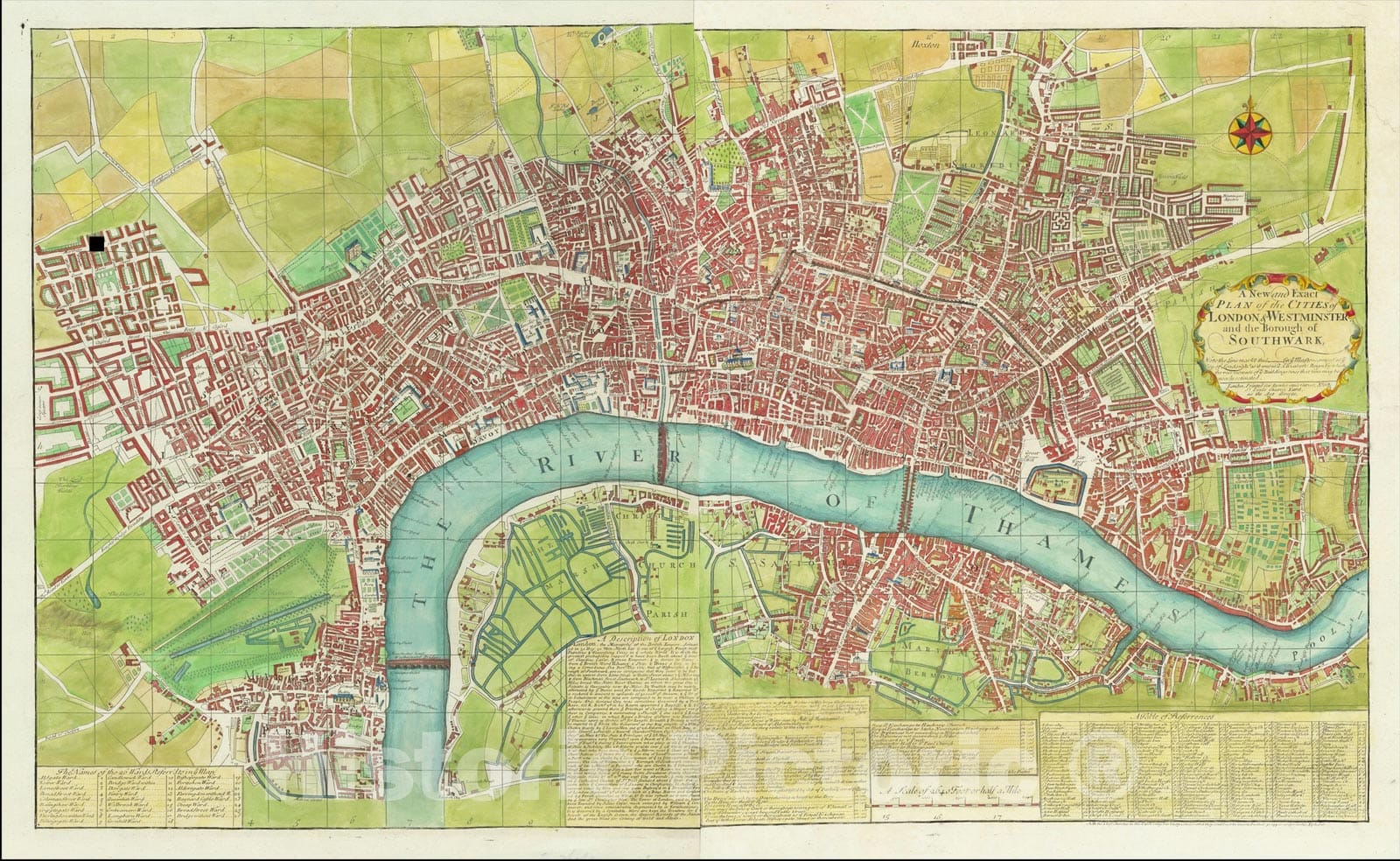 Historic Map : A New and Exact Plan of the Cities of London & Westminster and the Borough of Southwark, c1795, Carington Bowles II, Vintage Wall Art