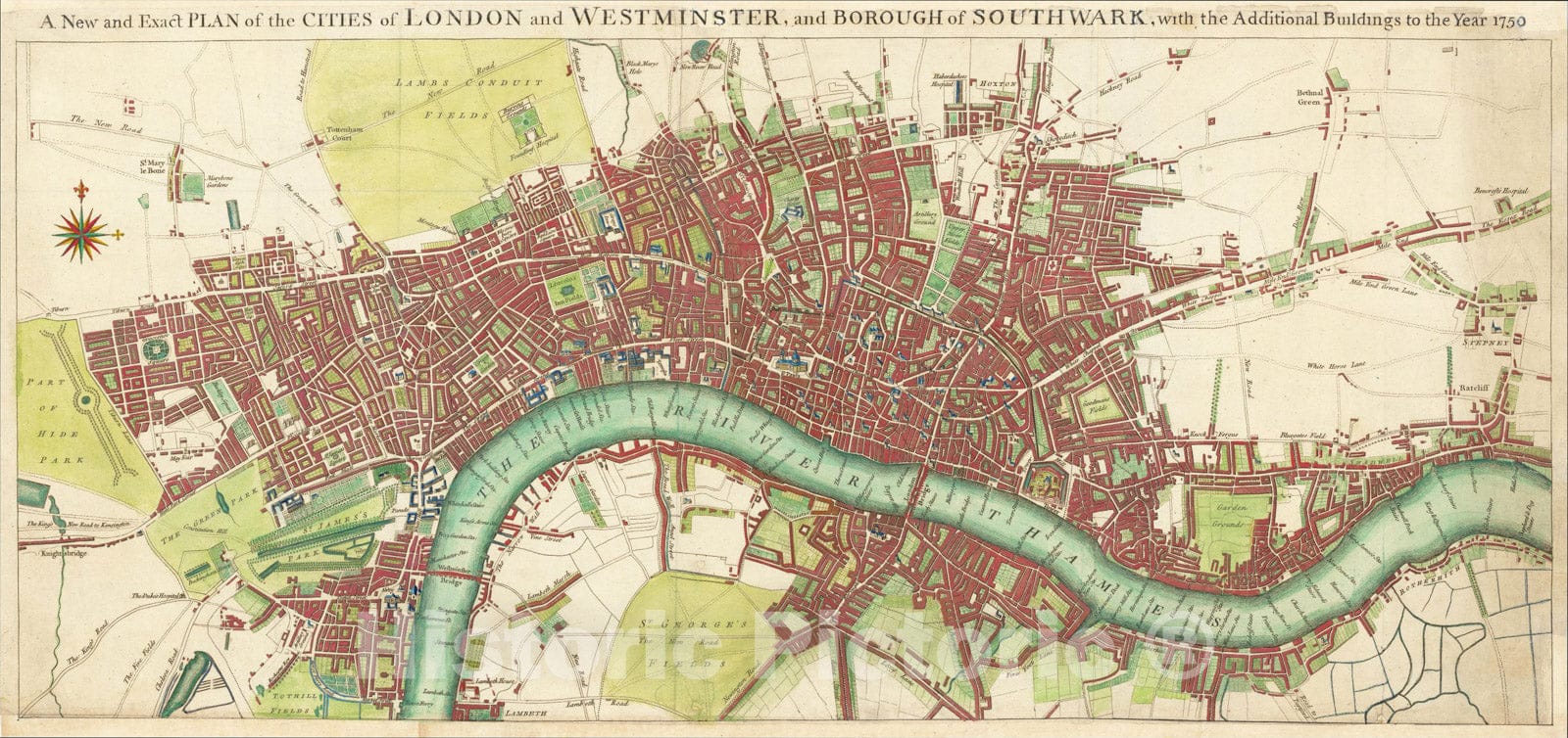 A New and Exact Plan of the Cities of London and Westminster and Borough of Southwark with the Additional Buildings to the Year 1756, 1756