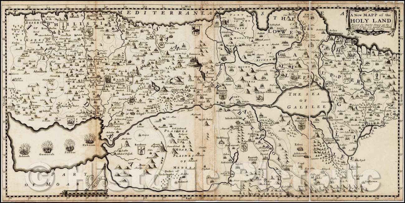 Historic Map - A New Mapp of the Holy Land Printed for Charles Harper att the Flower Deluce over against St. Dunstan's Church in Fleet-street London, 1690 - Vintage Wall Art