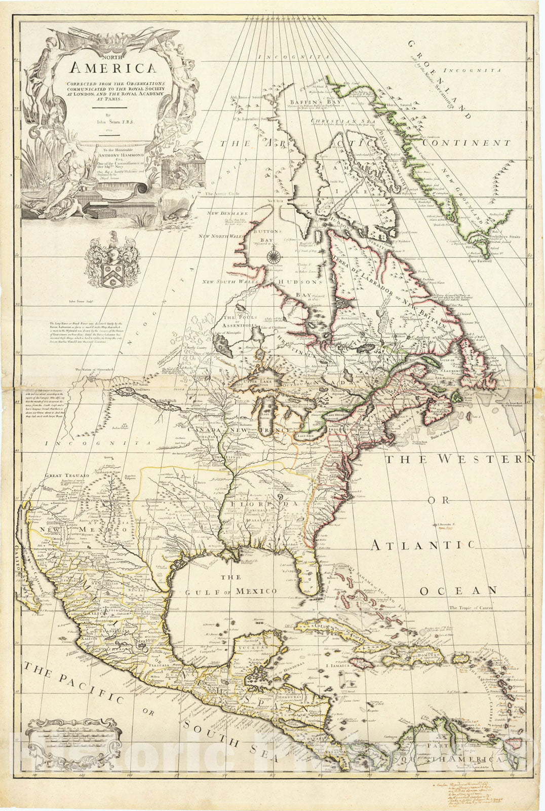 North America Corrected From The Observations Communicated to The Royal Society of London and The Royal Academy of Paris, 1710, c1710, v1, Vintage Wall Art :