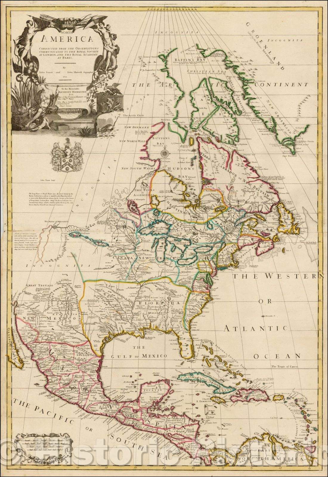 North America Corrected From The Observations Communicated to The Royal Society of London and The Royal Academy of Paris , 1710, John Senex