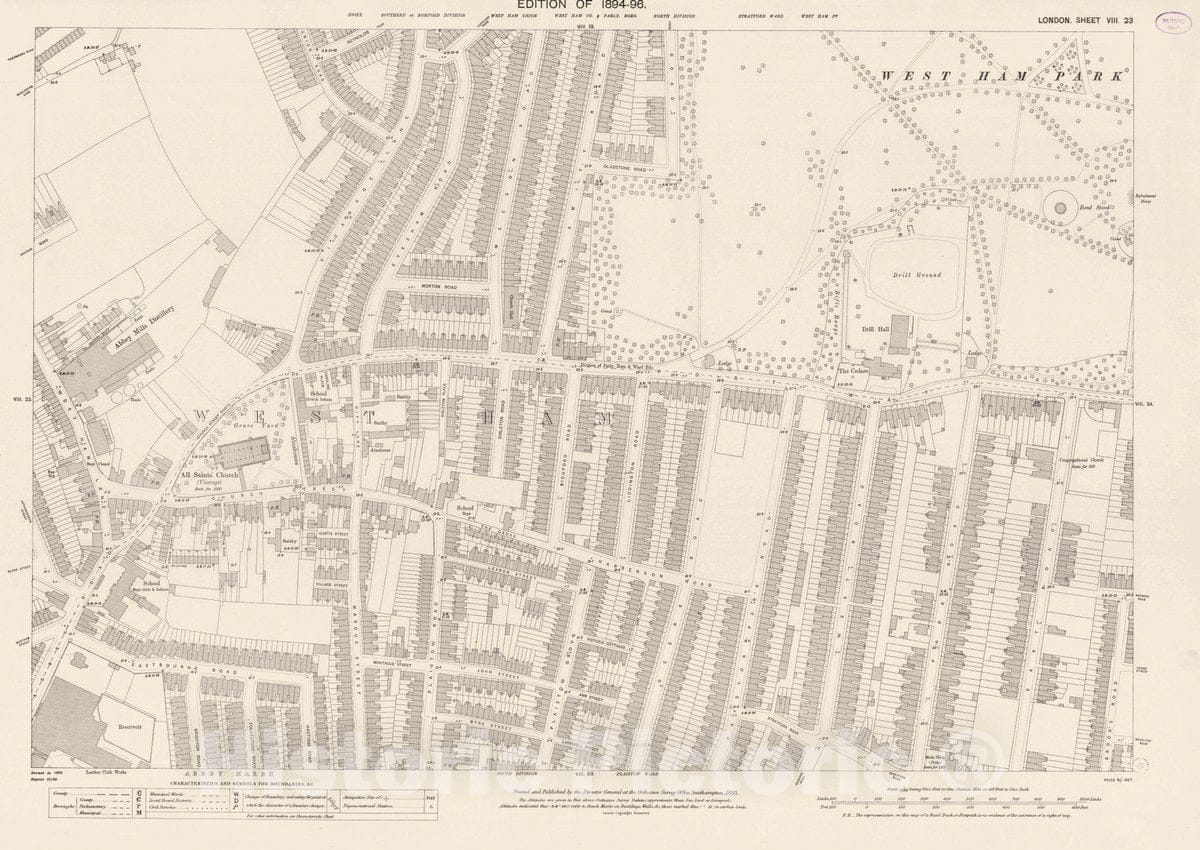 Ordnance Survey Maps, London, Five feet to The Mile. London Sheet VIII.23, 1895 City Atlas