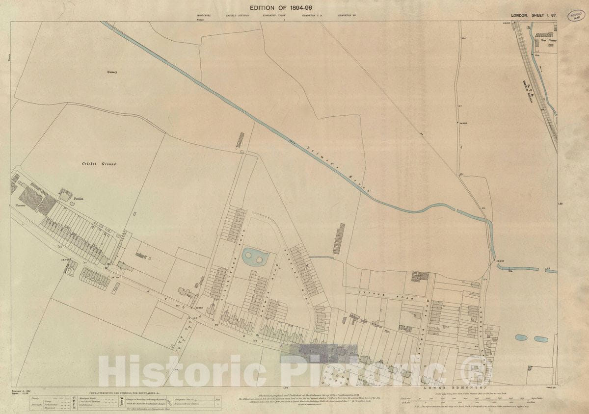 Historic Map : Ordnance Survey Maps, London, Five feet to The Mile. London Sheet I.67, 1895 City Atlas - Vintage Wall Art