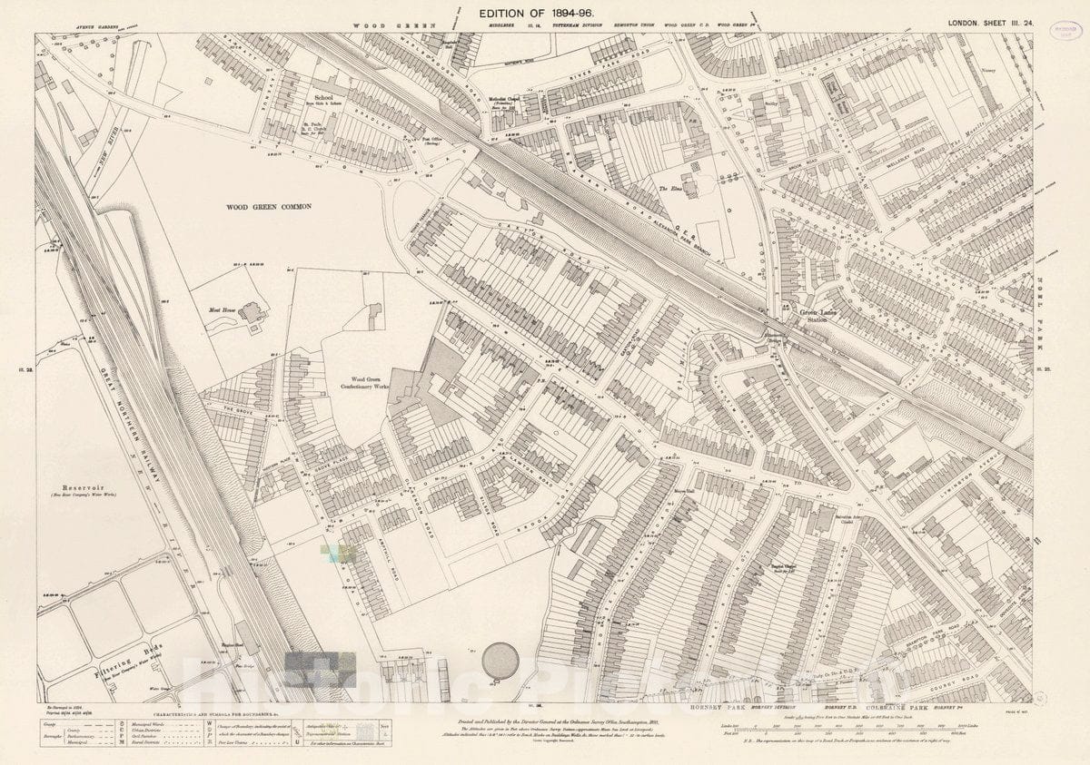 Historic Map : Ordnance Survey Maps, London, Five feet to The Mile. London Sheet III.24, 1895 City Atlas - Vintage Wall Art