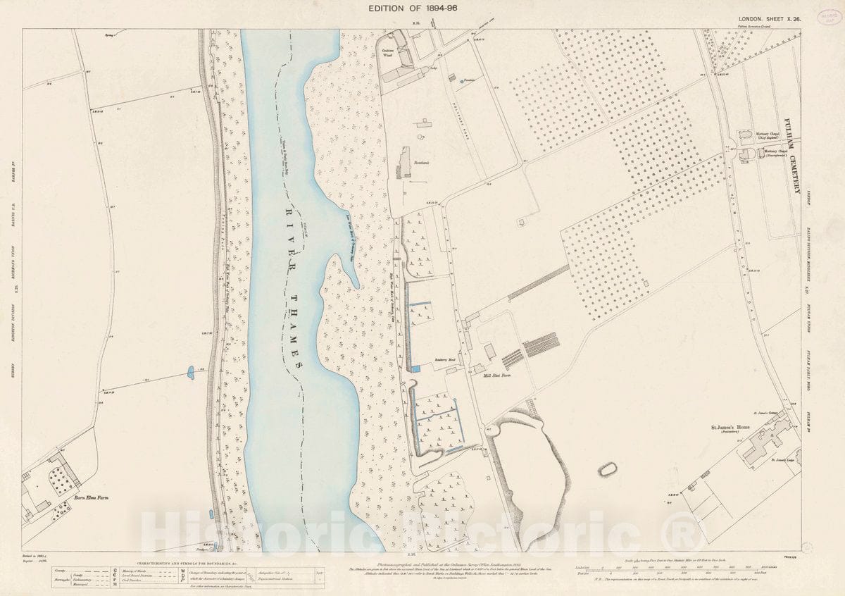 Ordnance Survey Maps, London, Five feet to The Mile. London Sheet X.26, 1895 City Atlas