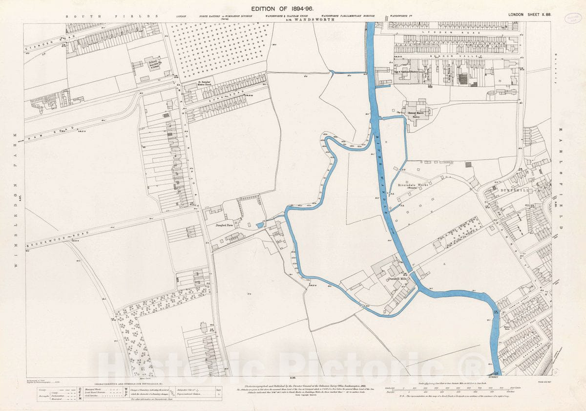 Historic Map : Ordnance Survey Maps, London, Five feet to The Mile. London Sheet X.88, 1895 City Atlas - Vintage Wall Art