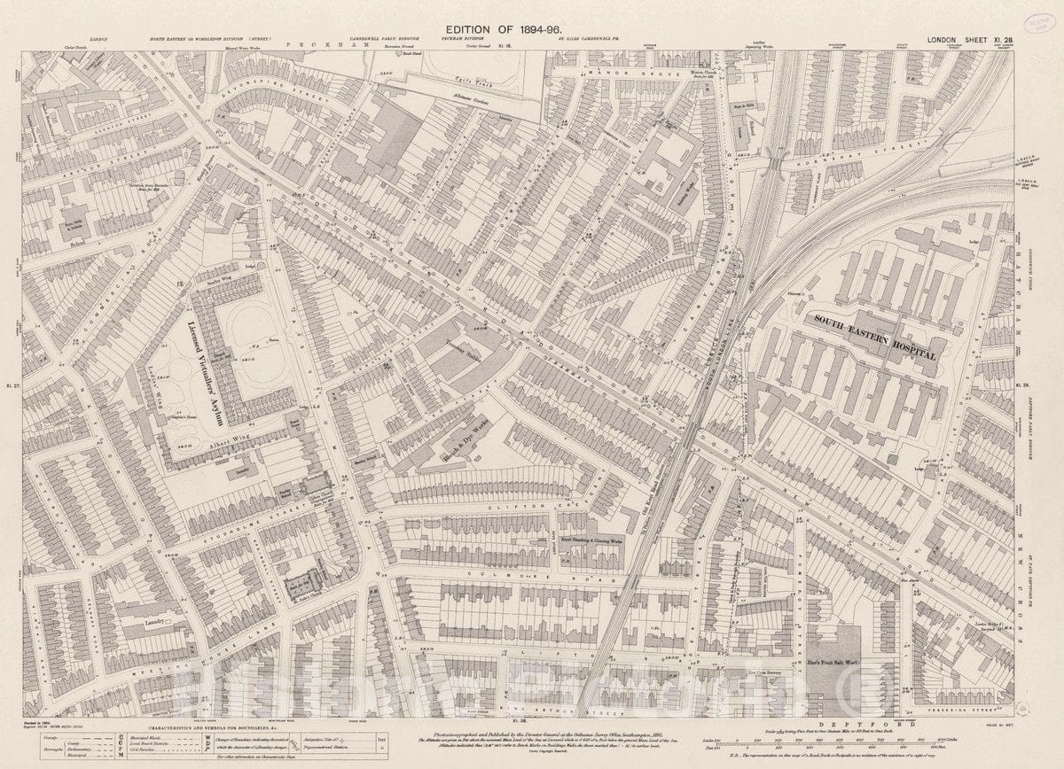 Historic Map : Ordnance Survey Maps, London, Five feet to The Mile. London Sheet XI.28, 1895 City Atlas - Vintage Wall Art