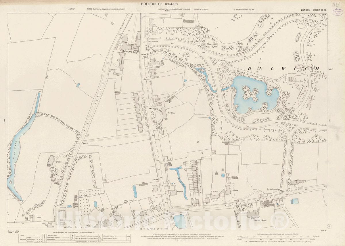 Historic Map : Ordnance Survey Maps, London, Five feet to The Mile. London Sheet XI.86, 1895 City Atlas - Vintage Wall Art