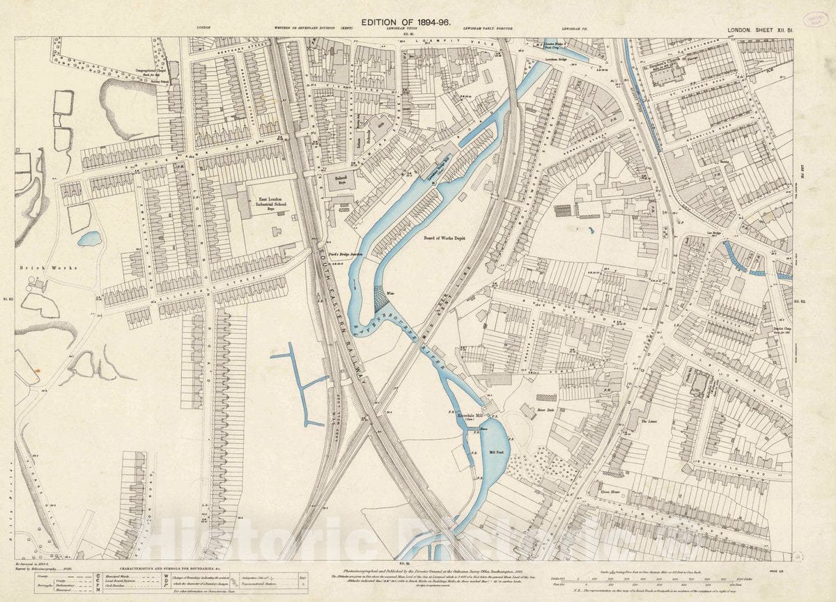 Historic Map : Ordnance Survey Maps, London, Five feet to The Mile. London Sheet XII.51, 1895 City Atlas - Vintage Wall Art