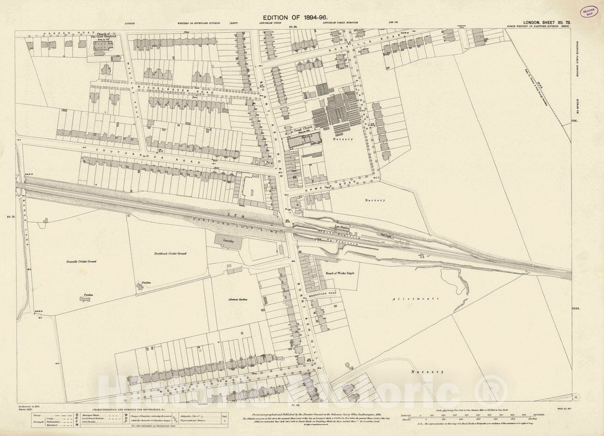 Historic Map : Ordnance Survey Maps, London, Five feet to The Mile. London Sheet XII.73, 1895 City Atlas - Vintage Wall Art