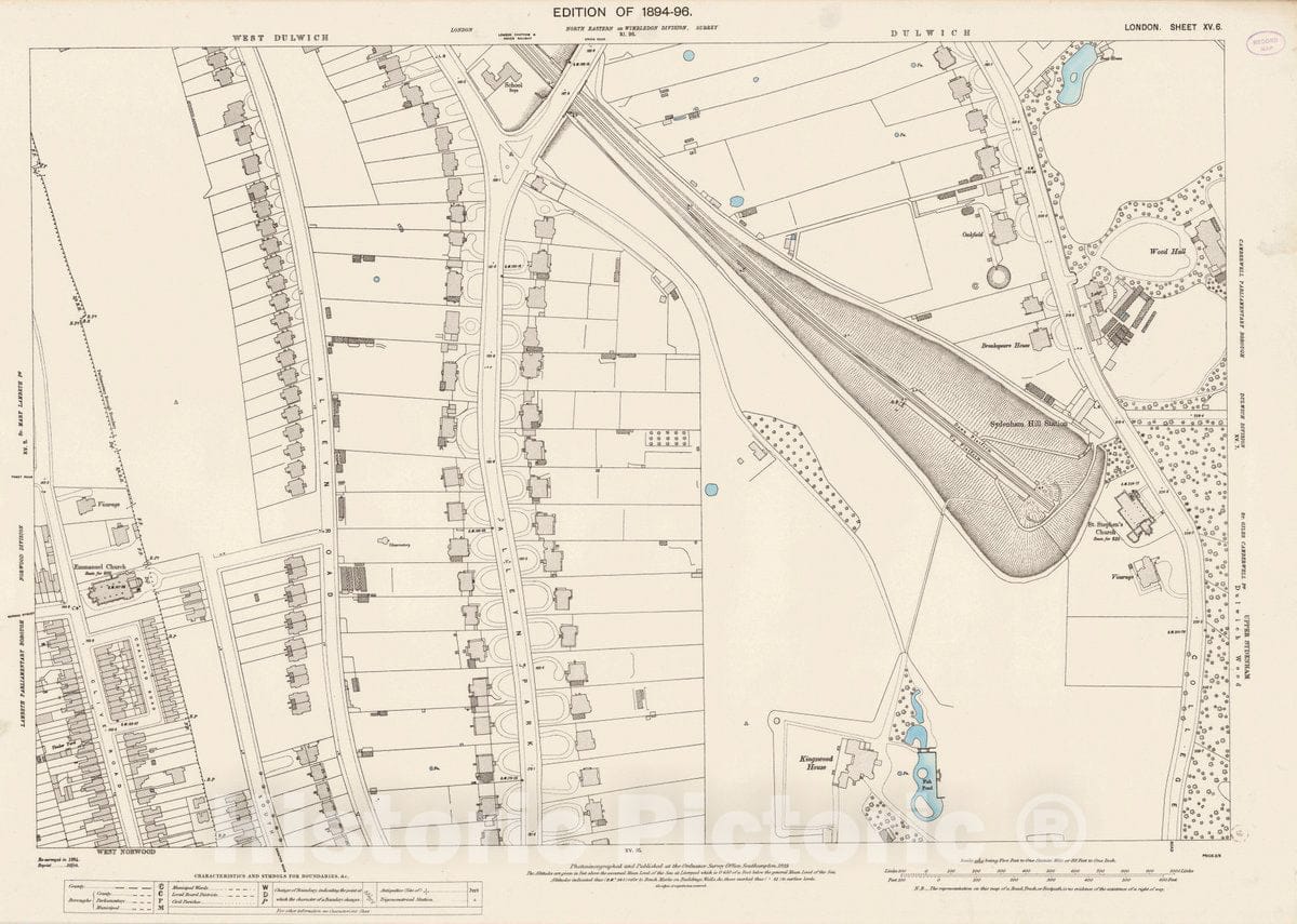 Ordnance Survey Maps, London, Five feet to The Mile. London Sheet XV.6, 1895 City Atlas